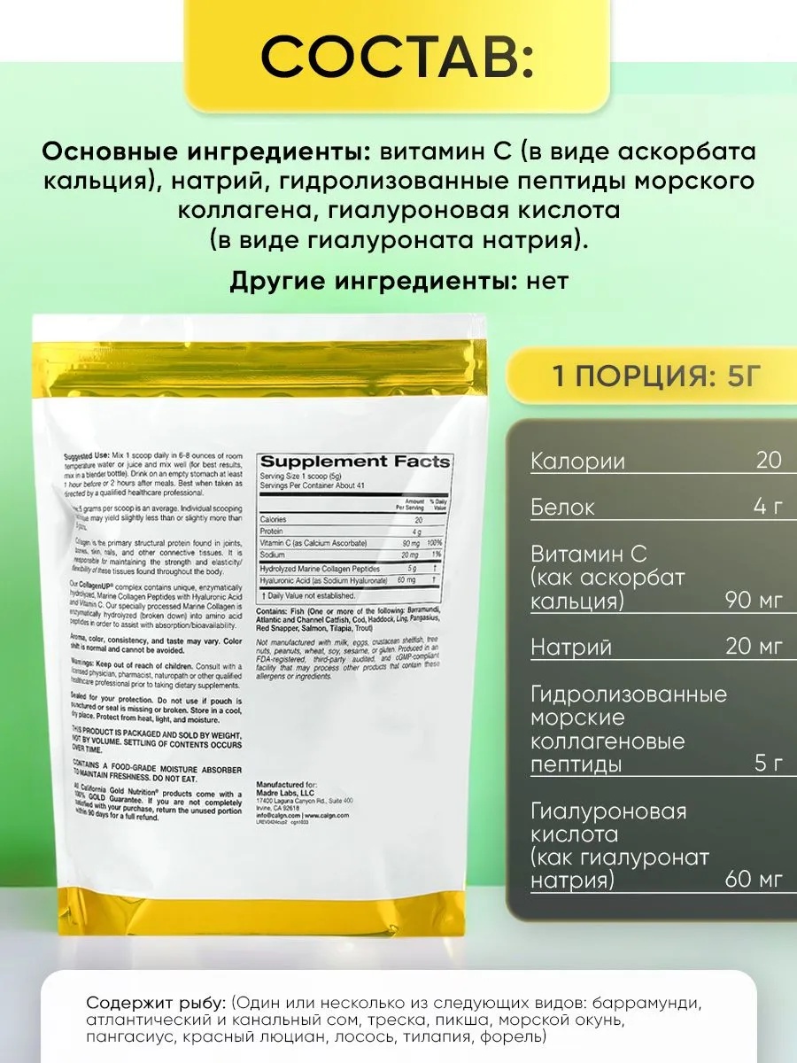CALIFORNIA GOLD NUTRITION Collagen UP 206 г