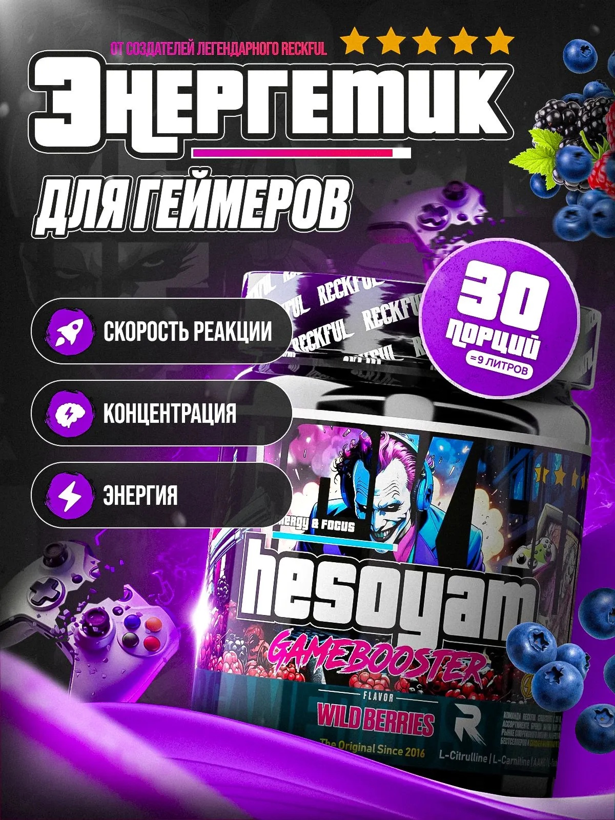 Reckful ® Game Booster Hesoyam 300g для геймеров (Forrest berries)