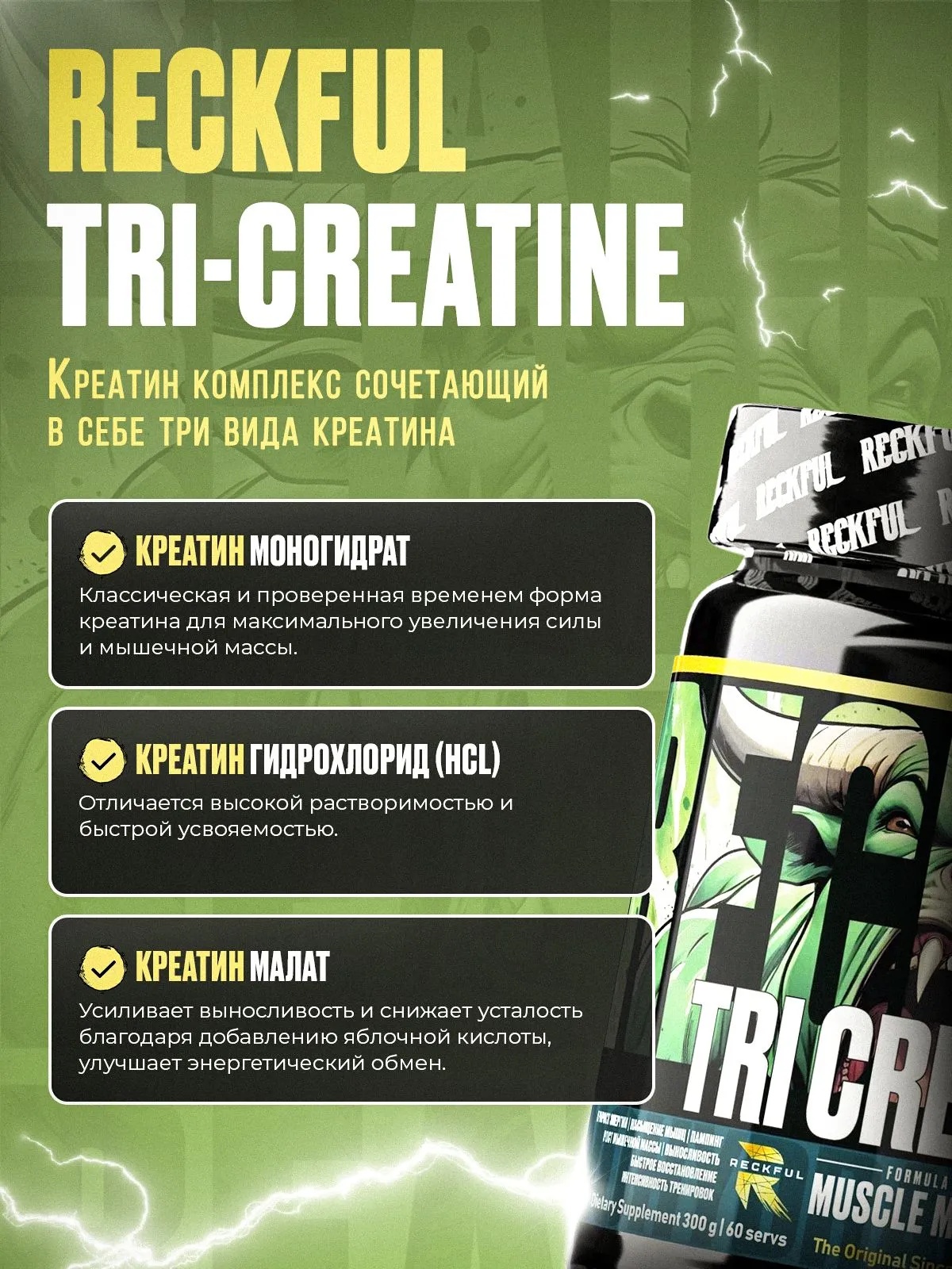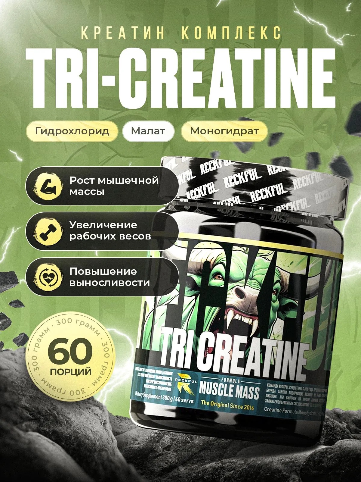 Reckful ® Tri-creatine 300g 60 serv