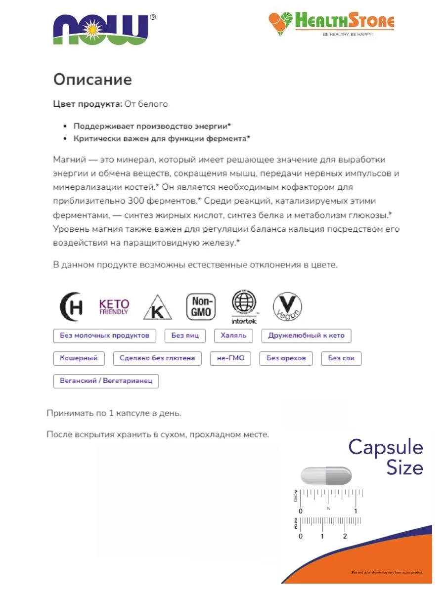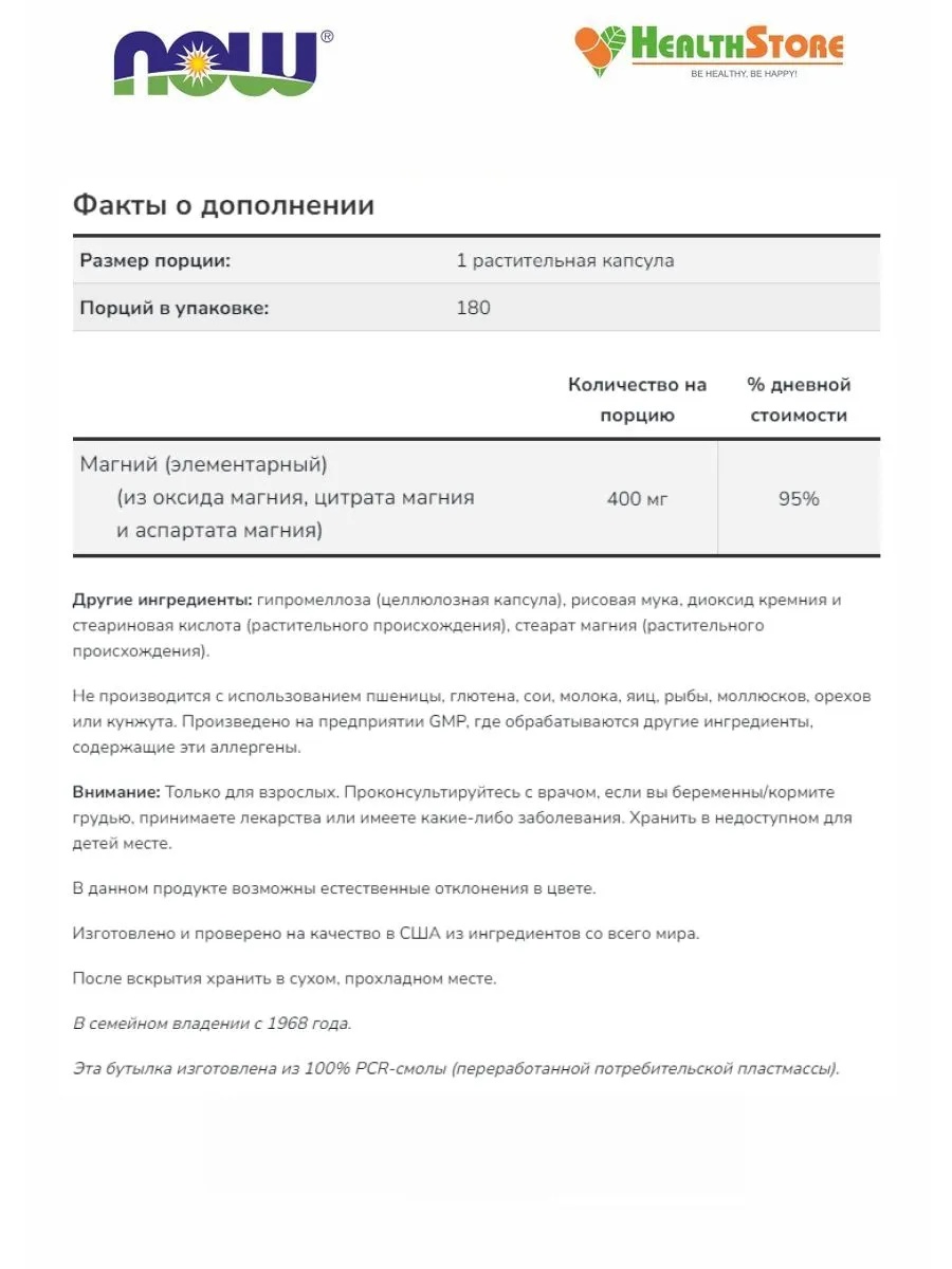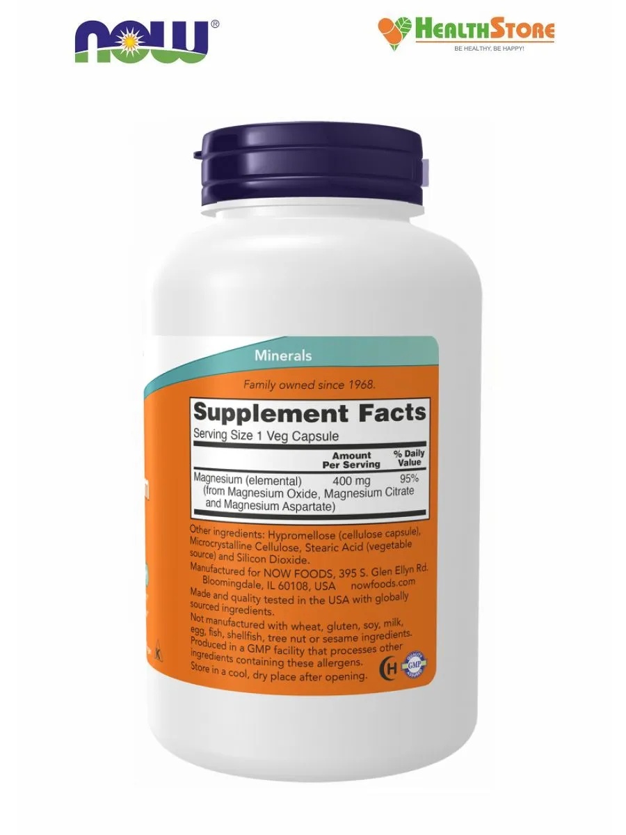 Now Magnesium Caps 400 мг 180 Vcaps