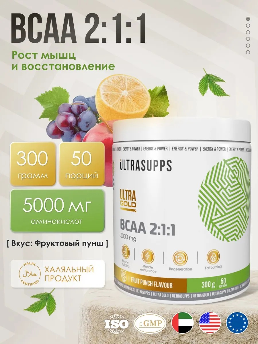ULTRASUPPS Ultra Gold BCAA 2:1:1 300 г - фруктовый пунш