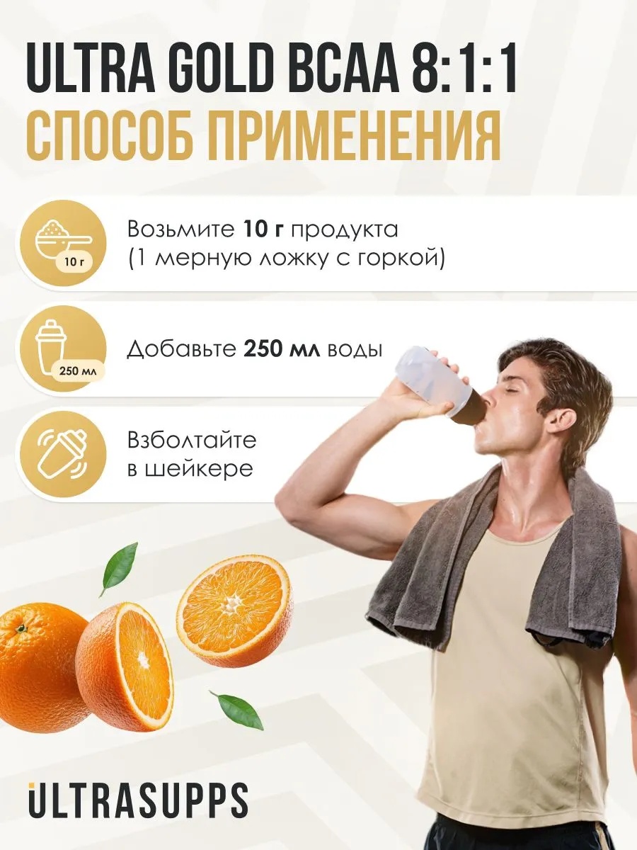 ULTRASUPPS Ultra Gold BCAA 8:1:1 300 г - апельсин