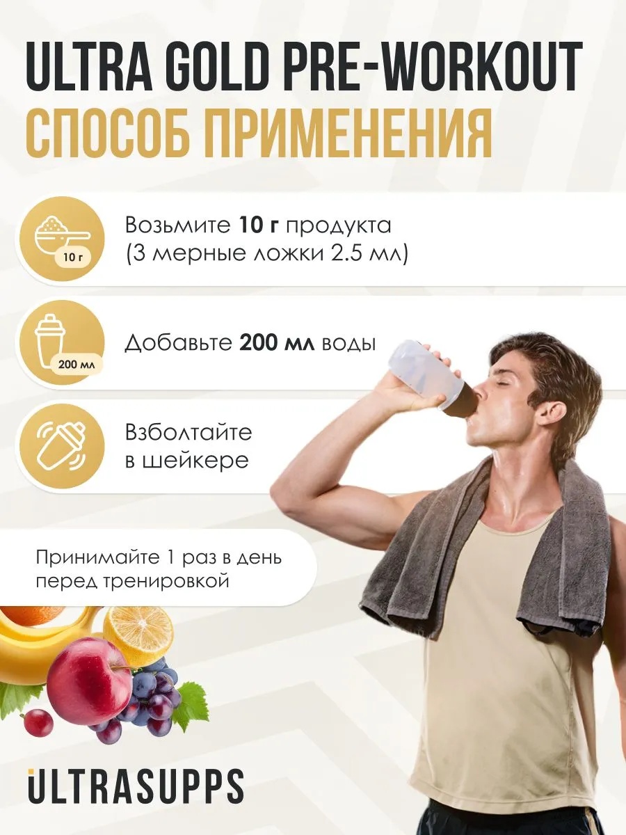 ULTRASUPPS Ultra Gold Pre Workout 200 г - мультифрукт