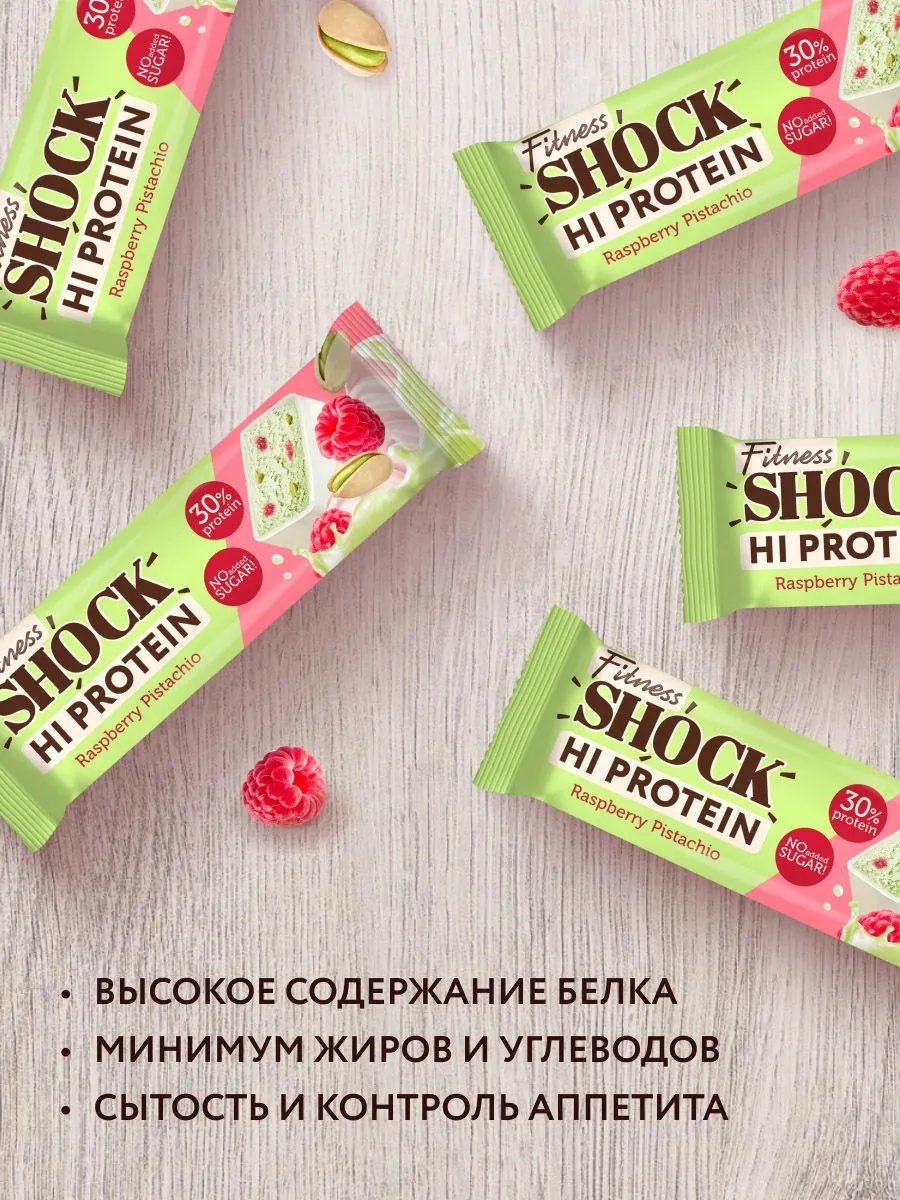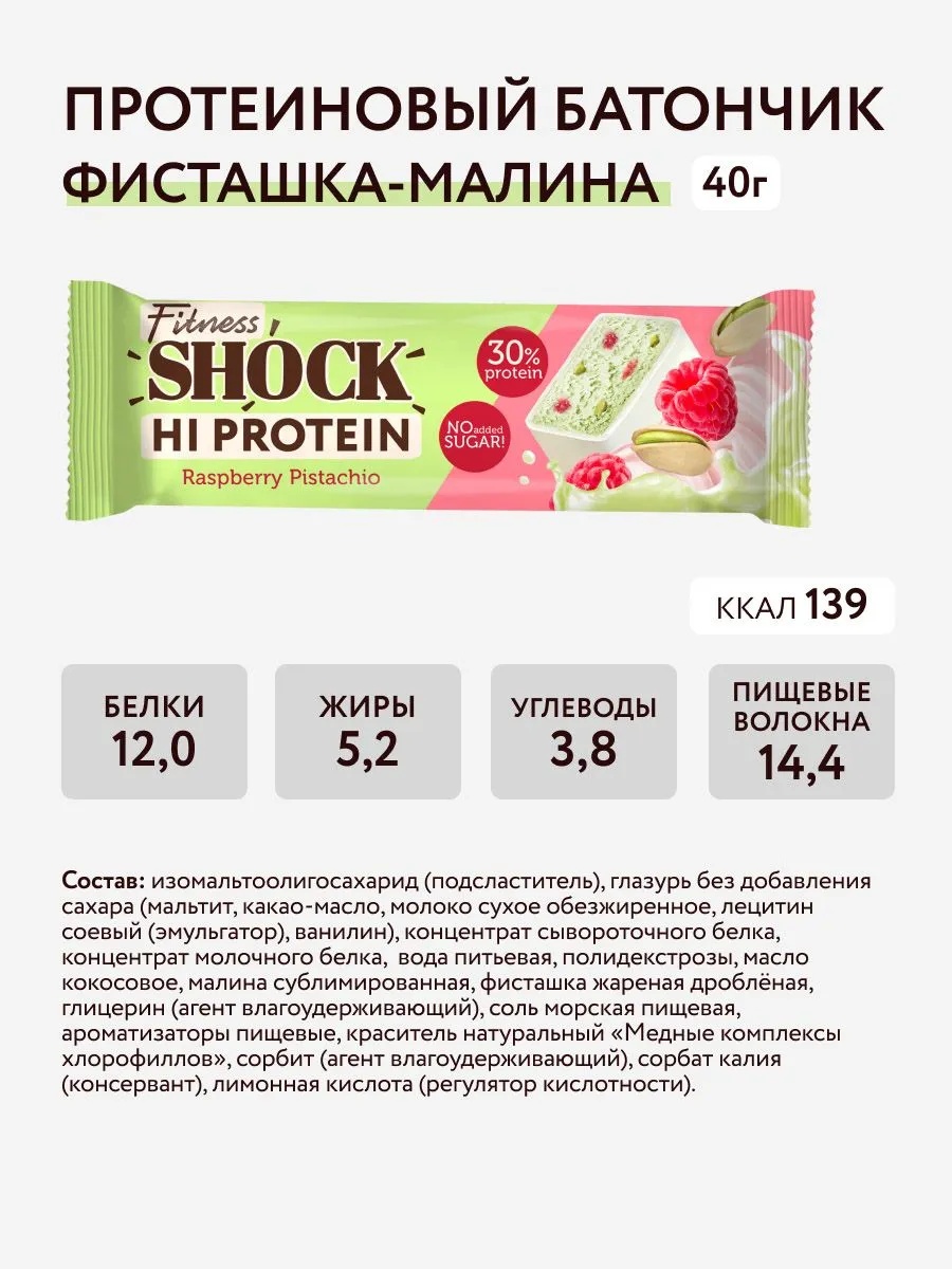 FitnesSHOCK Батончик глазированный Hi Protein 40 г - фисташки-малина