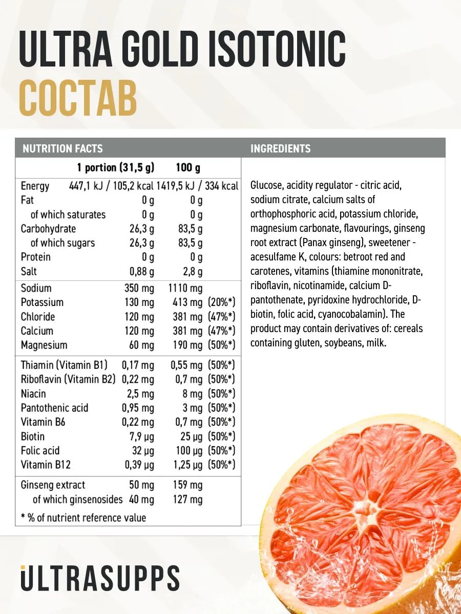 ULTRASUPPS Ultra Gold Isotonic 500 г - грейпфрут