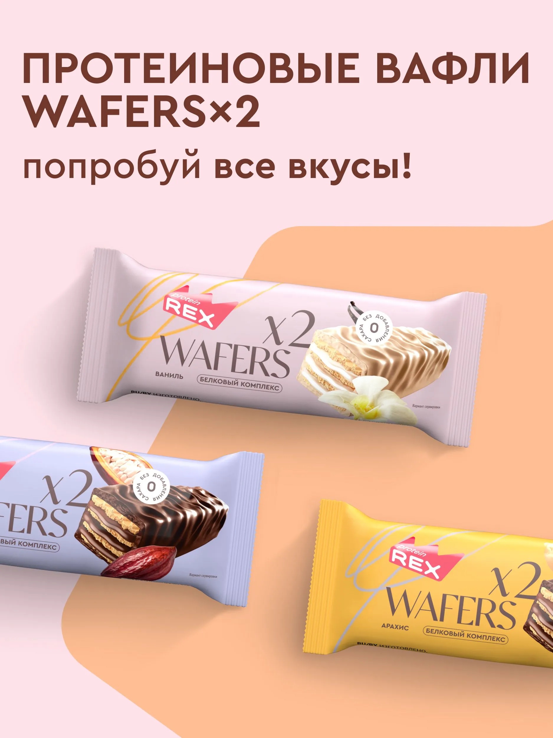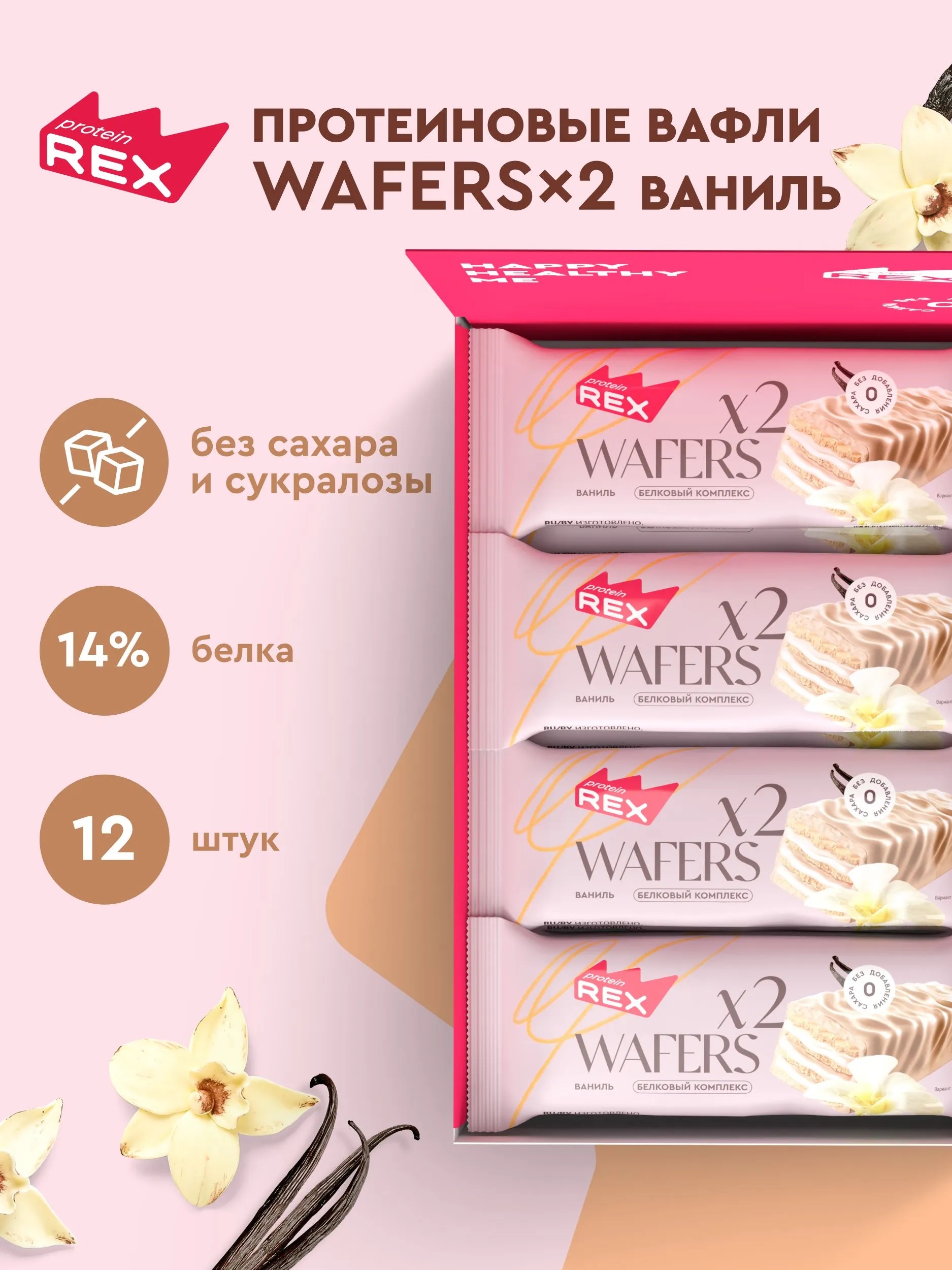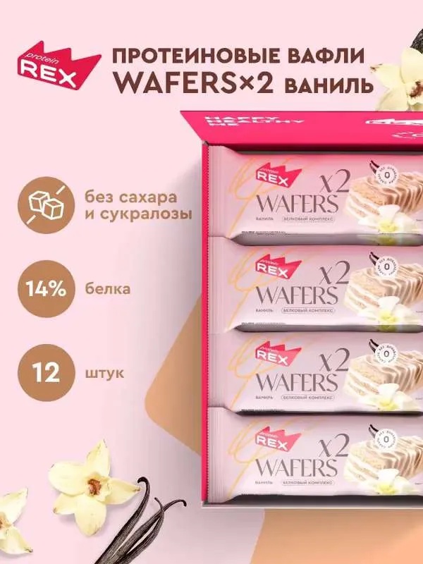 Protein Rex Вафли протеиновые глазированные "Ваниль" 50 гр
