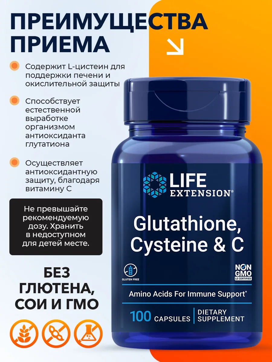 LIFE EXTENSION Glutathione, Cysteine & C 100 capsules