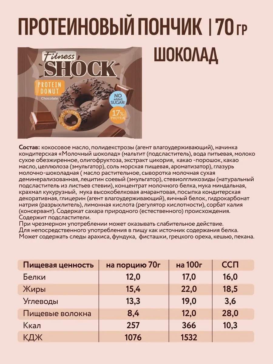 FitnesSHOCK Protein Donut 70 гр - шоколад