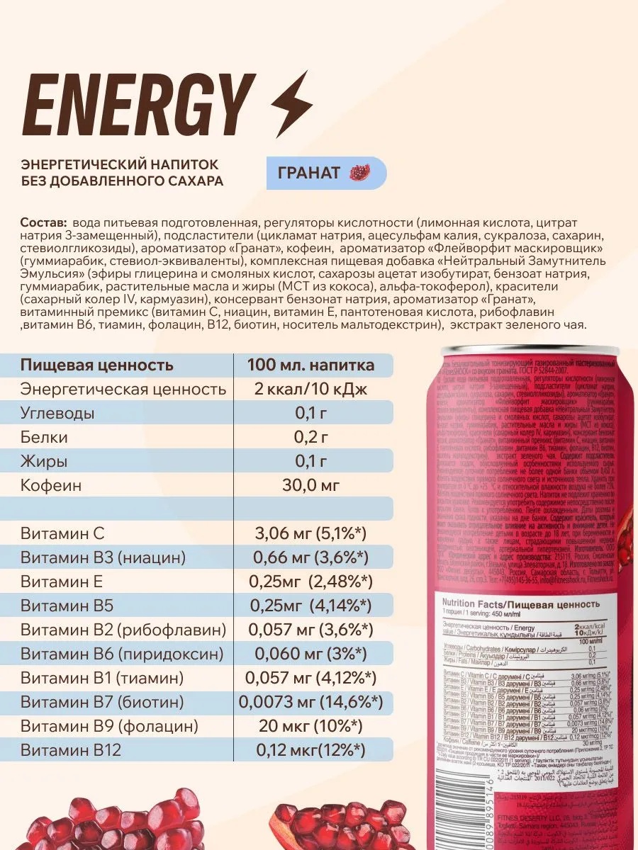 FitnesSHOCK Напиток Energy 450 мл - гранат