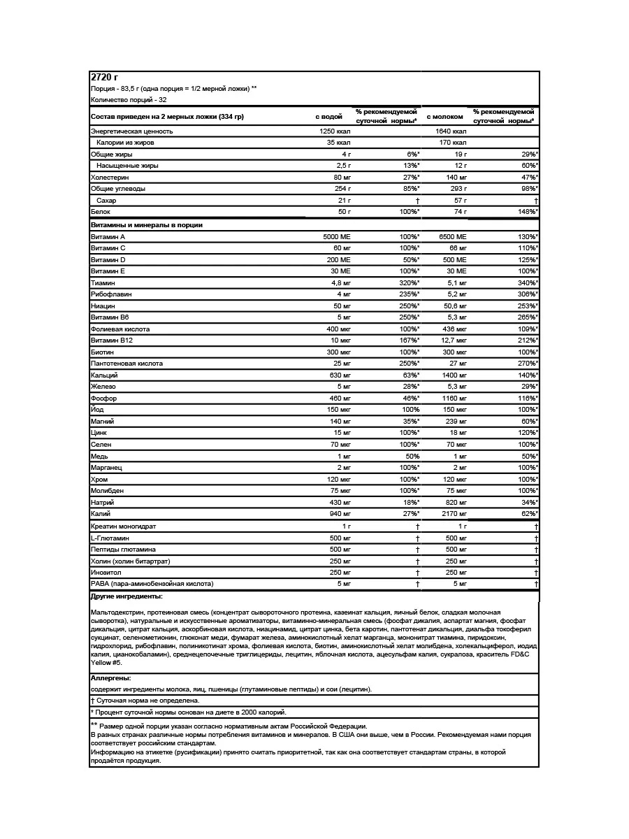 OPTIMUM NUTRITION Serious Mass 2727 гр - ваниль
