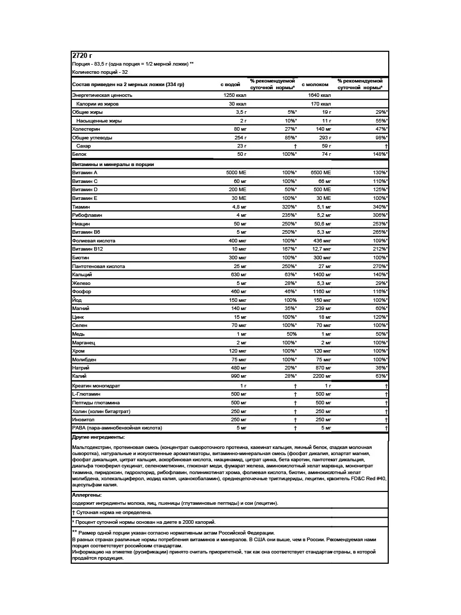 OPTIMUM NUTRITION Serious Mass 2727 гр - клубника