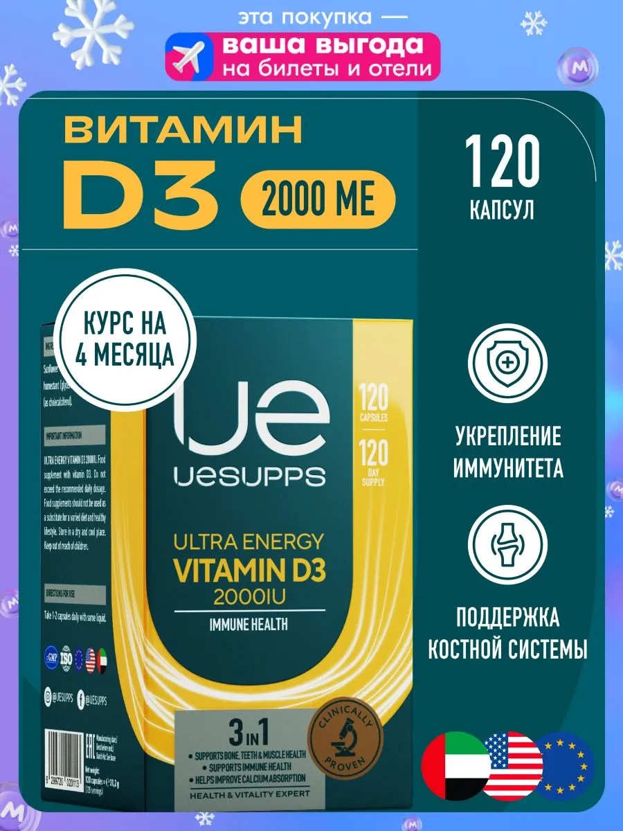 UeSUPPS Vitamin D3 2000IU 120 мяг капс