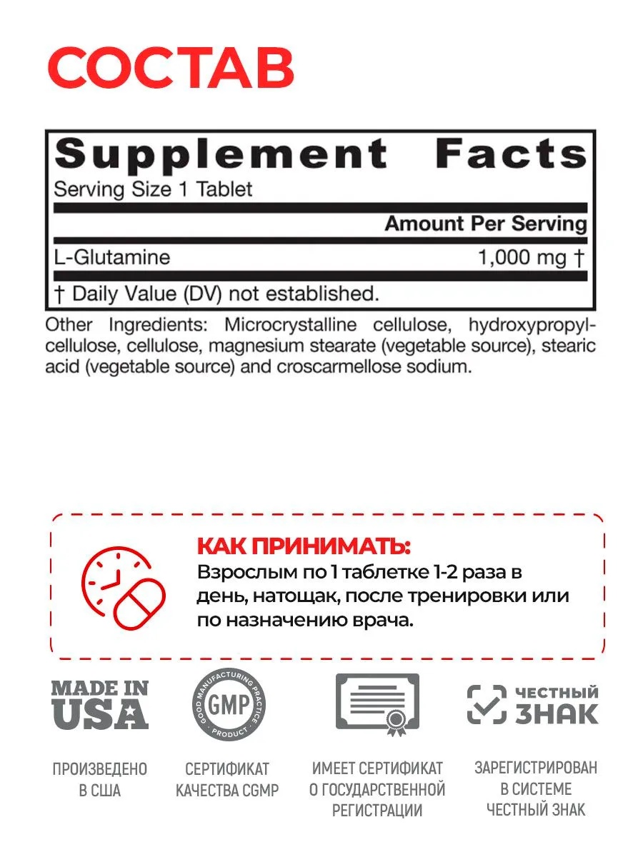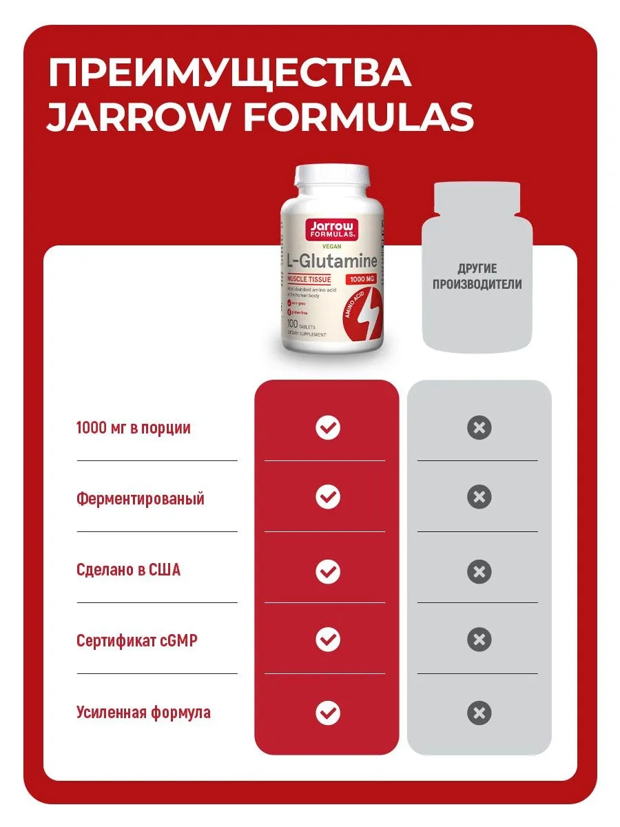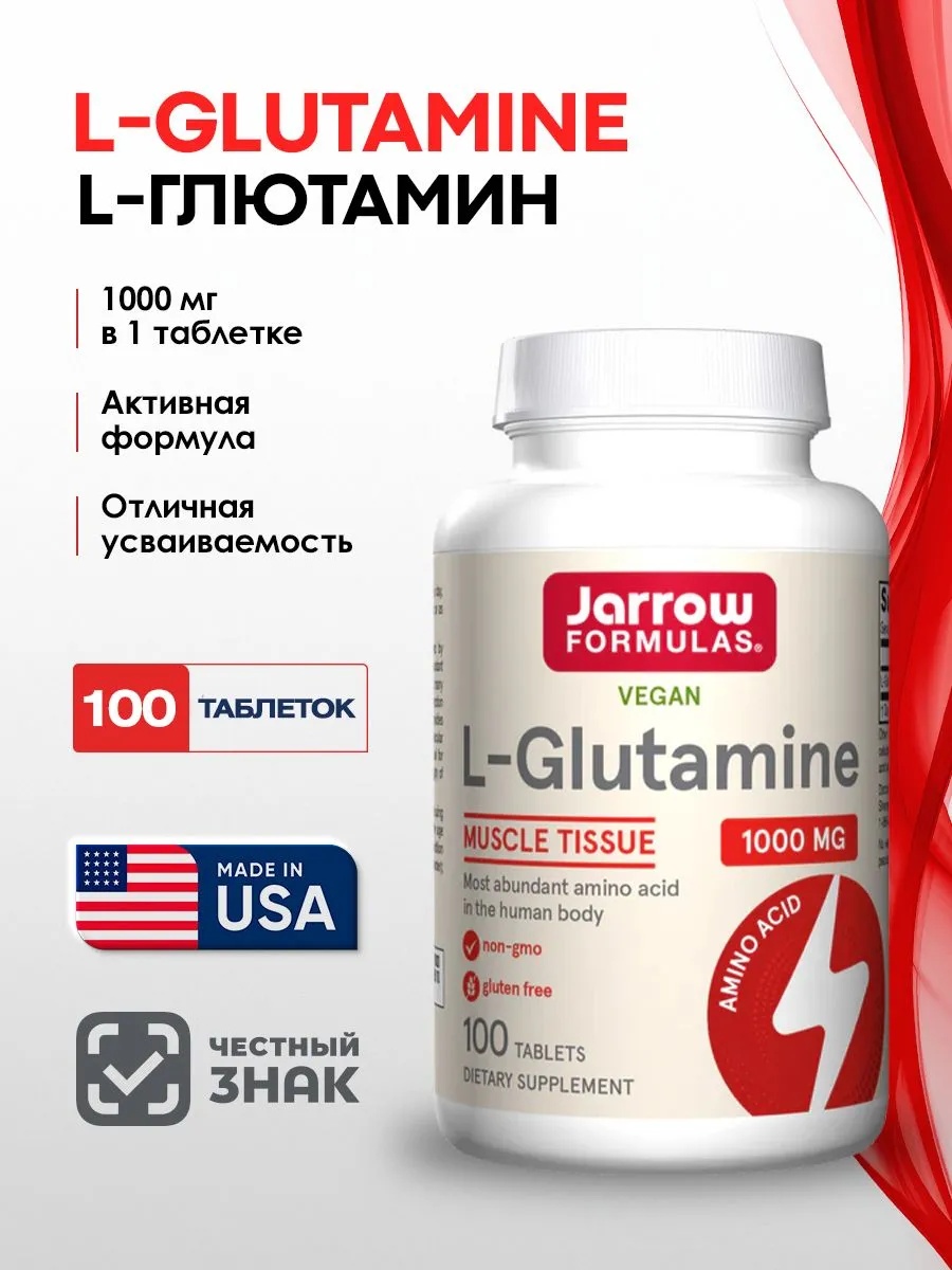 JARROW FORMULAS L-Glutamine 1000 мг 100 таб
