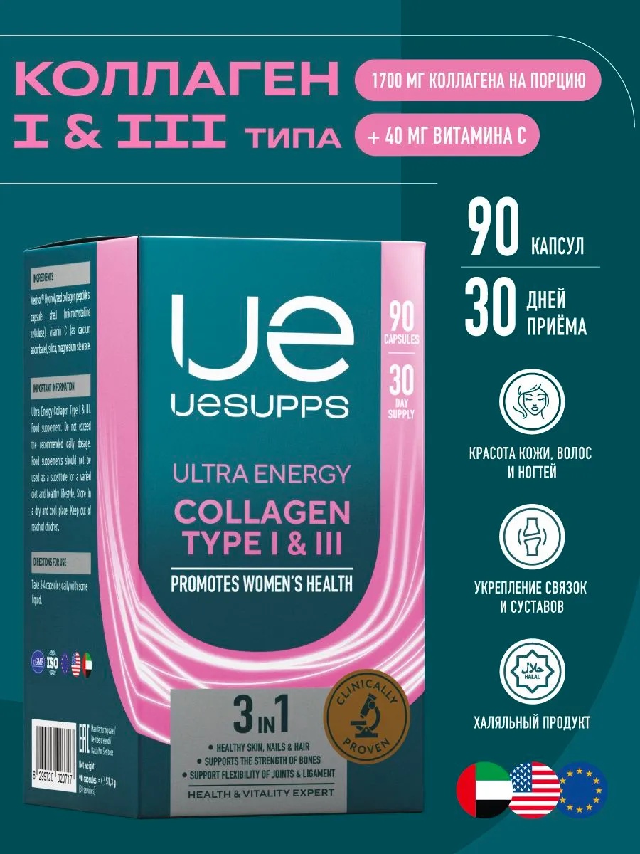 UeSUPPS Collagen Type I & III Ultra Energy 90 капс