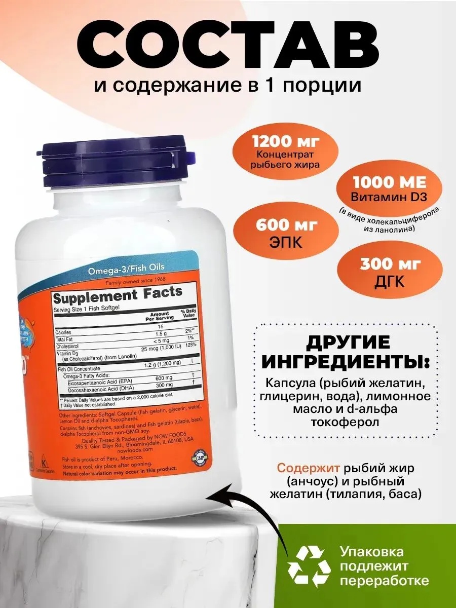 NOW Ultra Omega-3-D 90 мяг капс