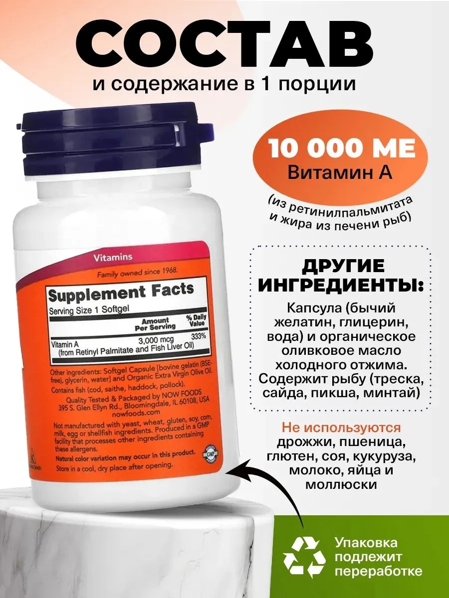 NOW Vitamin A 10000 100 капс