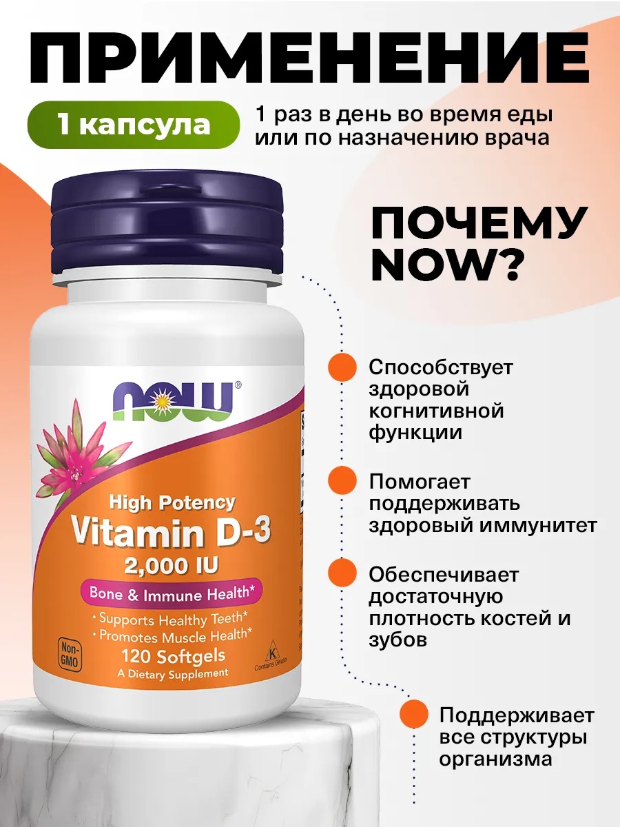 NOW Vitamin D-3 2000 ед 120 капс