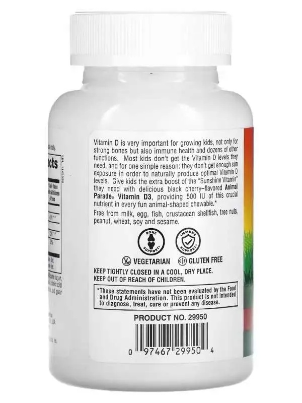 Nature's Plus Animal Parade D3 500 IU Chewable Natural Black Cherry Flavor 90