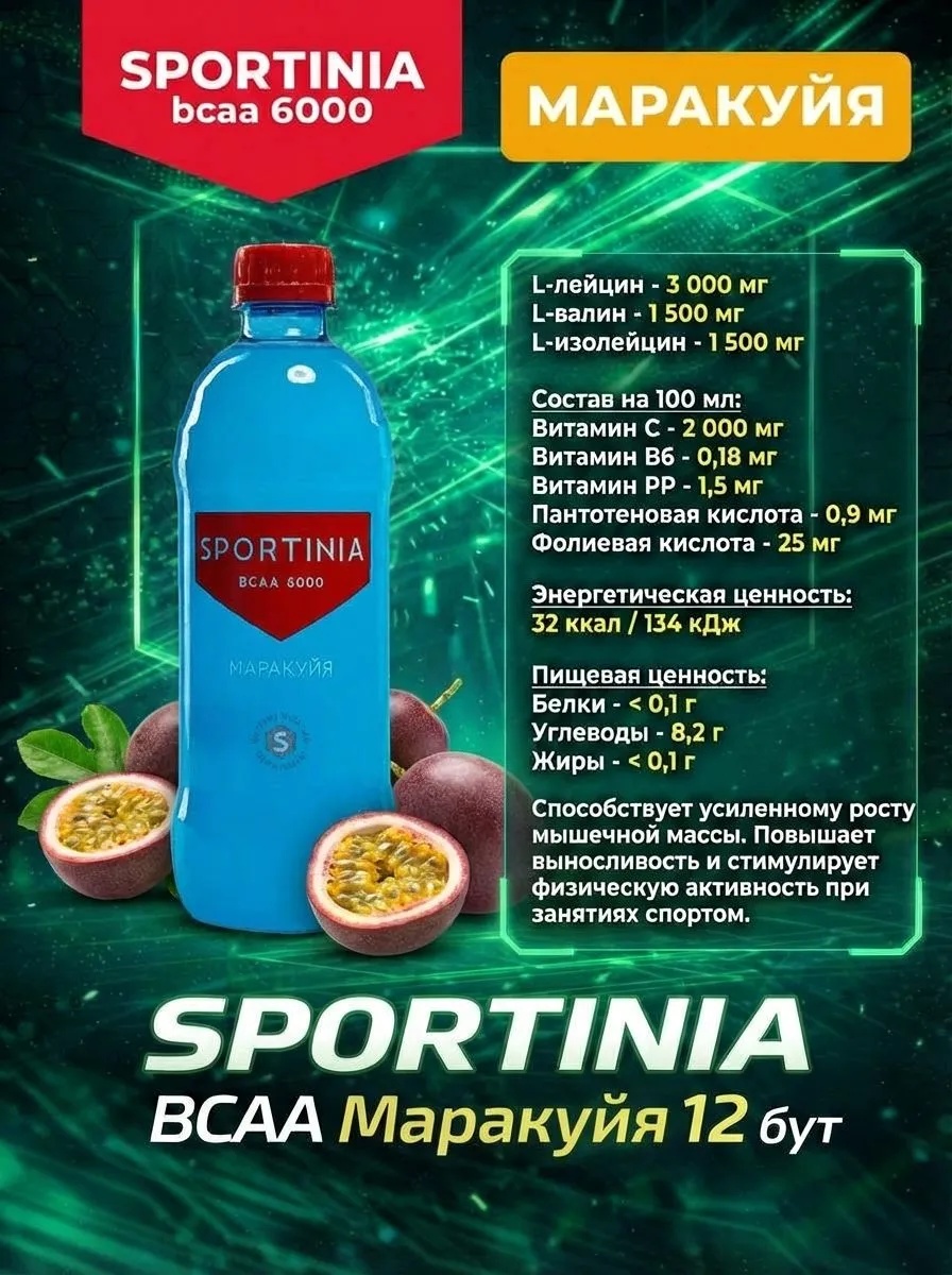 SPORTINIA Напиток BCAA 6000 500 мл - маракуйя