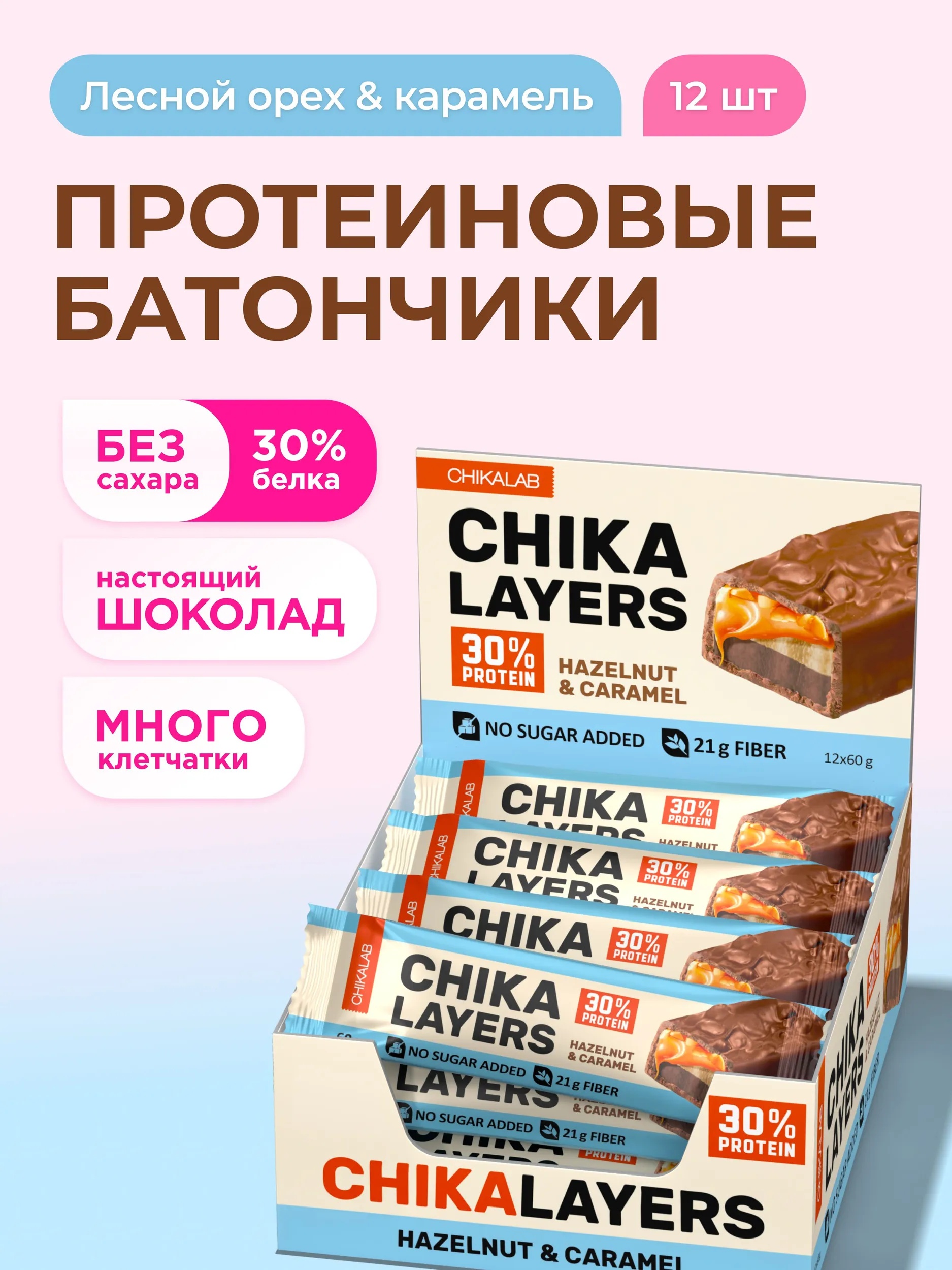 CHIKALAB Батончик глазированный Лесной орех с карамелью 60 г