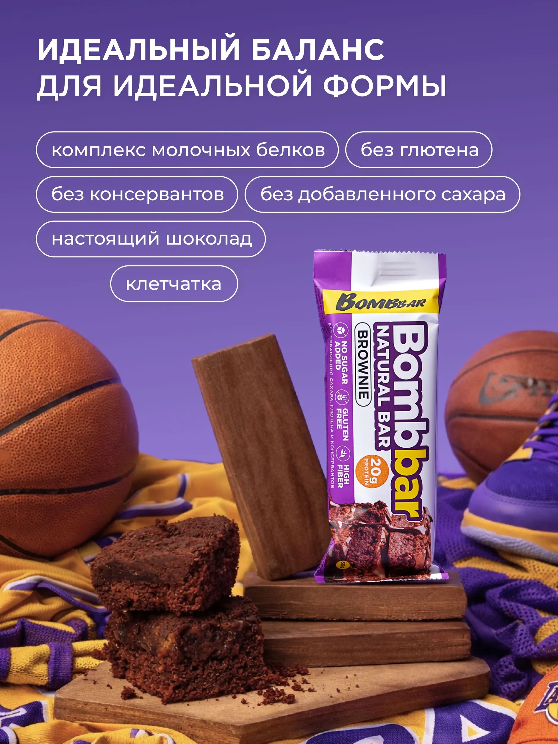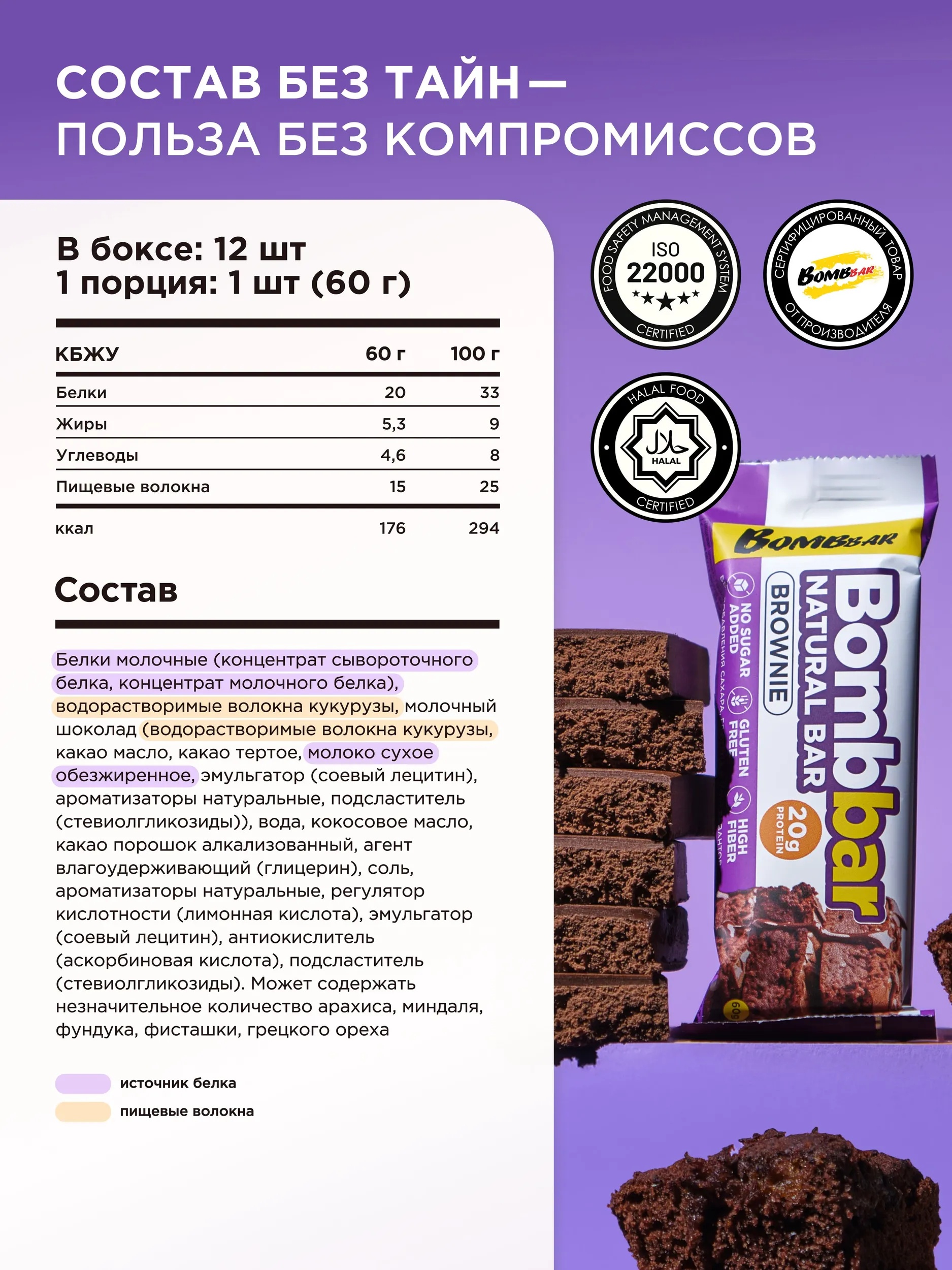 BOMBBAR Батончик неглазированный Брауни" 60 г