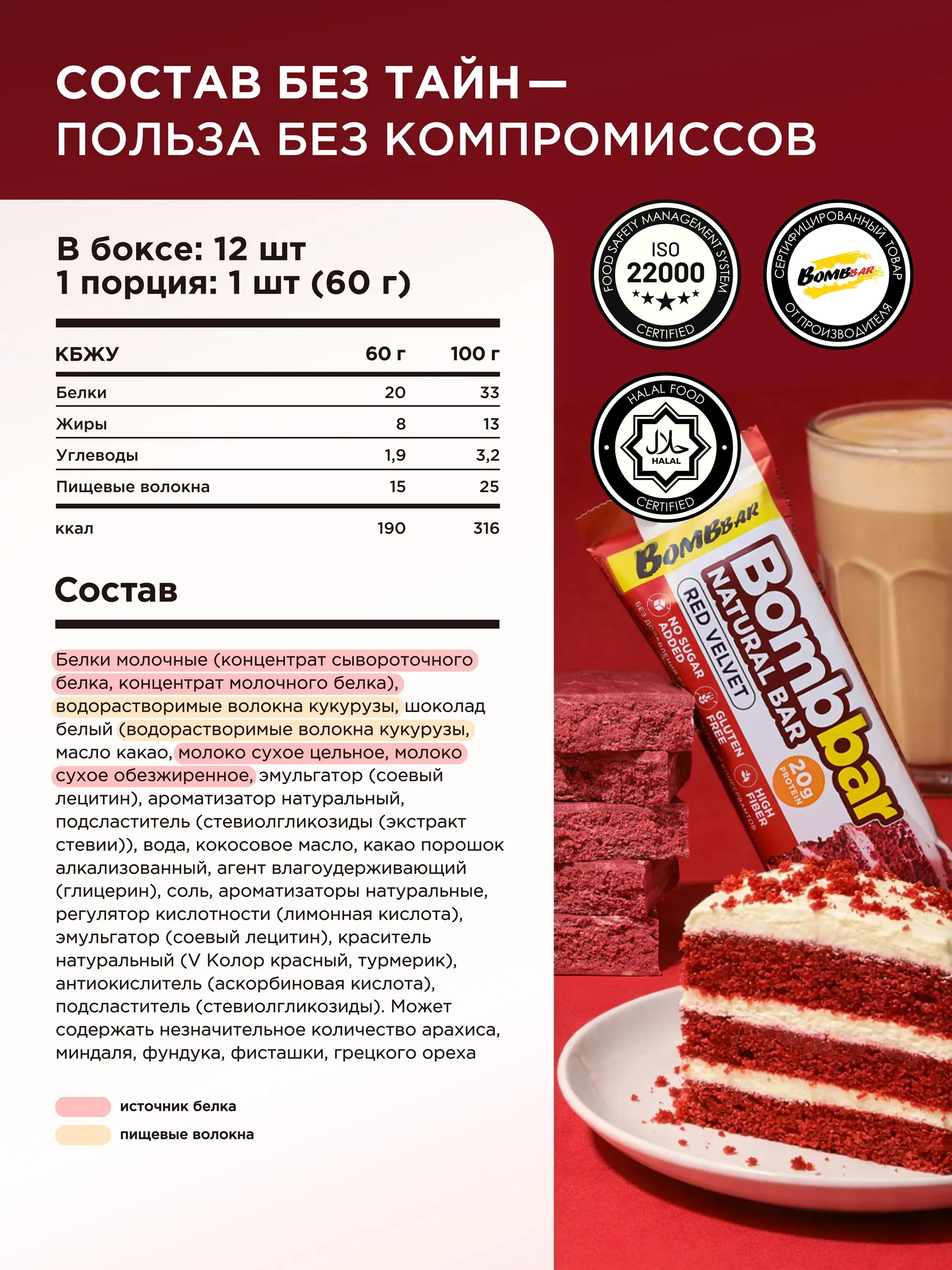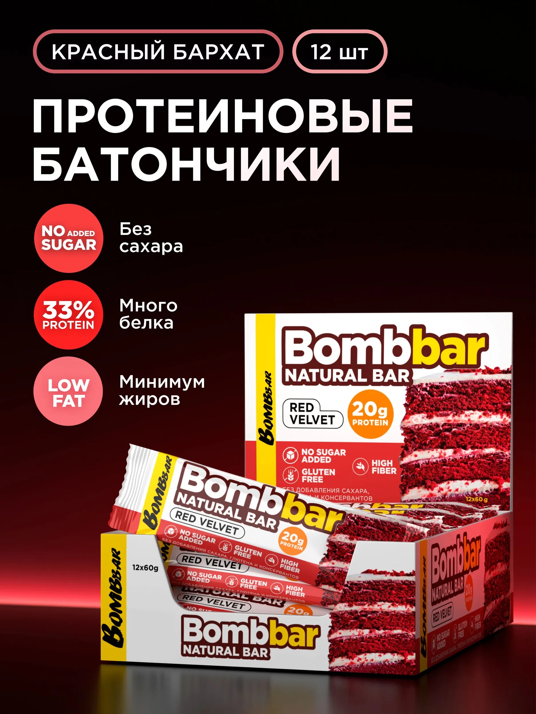 BOMBBAR Батончик неглазированный Красный бархат 60 г