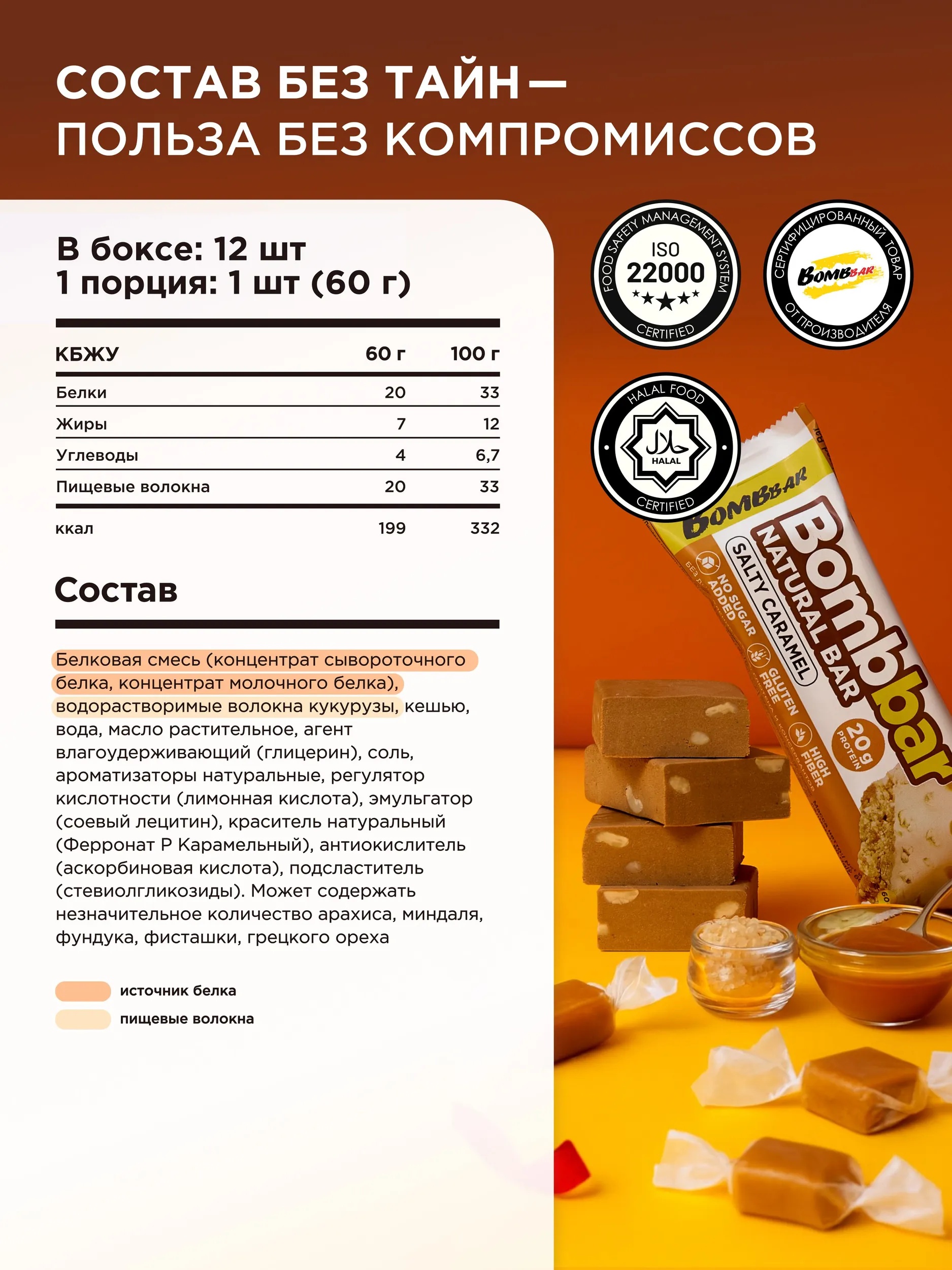 BOMBBAR Батончик неглазированный Солёная карамель 60 г