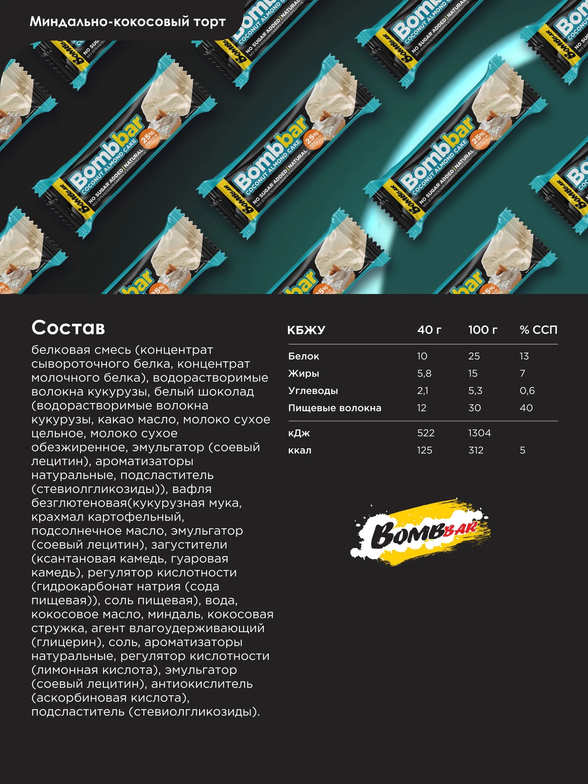 BOMBBAR Батончик глазированный Миндально-кокосовый торт 40 г