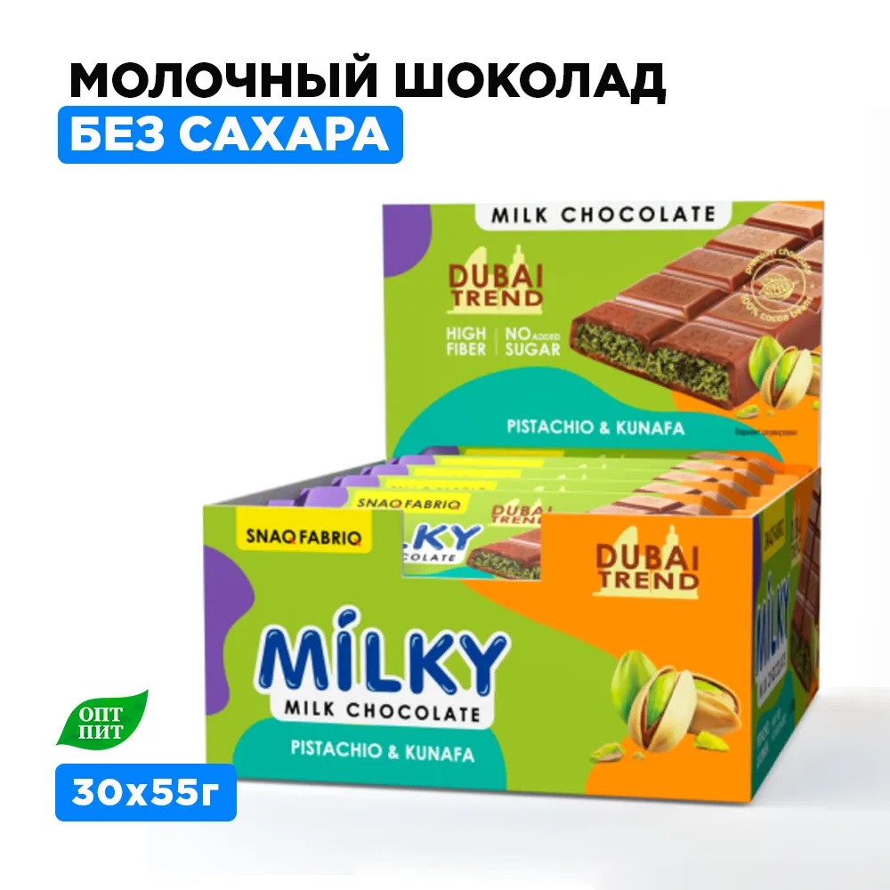 SNAQ FABRIQ Молочный шоколад с фисташковой пастой и хрустящим тестом 55 г