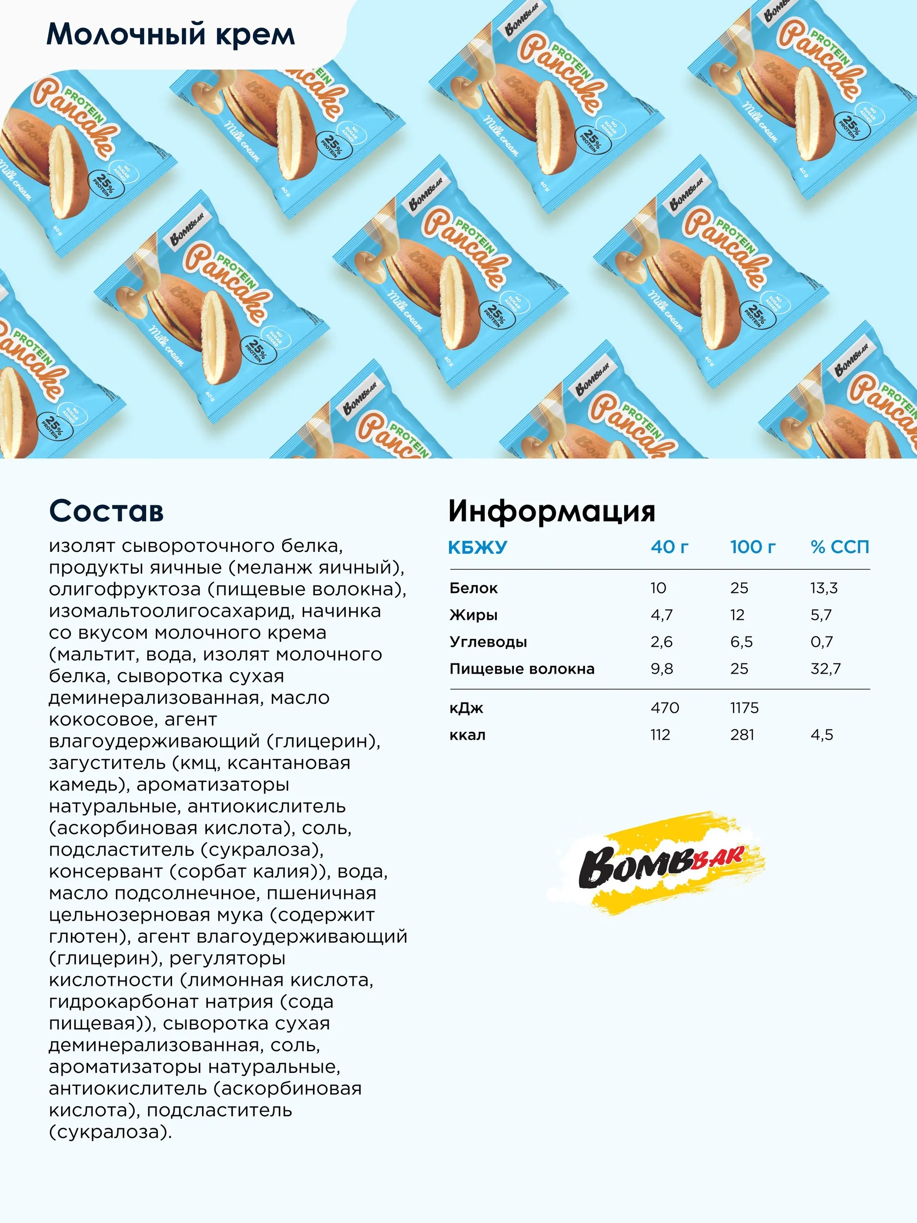 BOMBBAR Панкейк неглазированный Молочный крем 40 гр.
