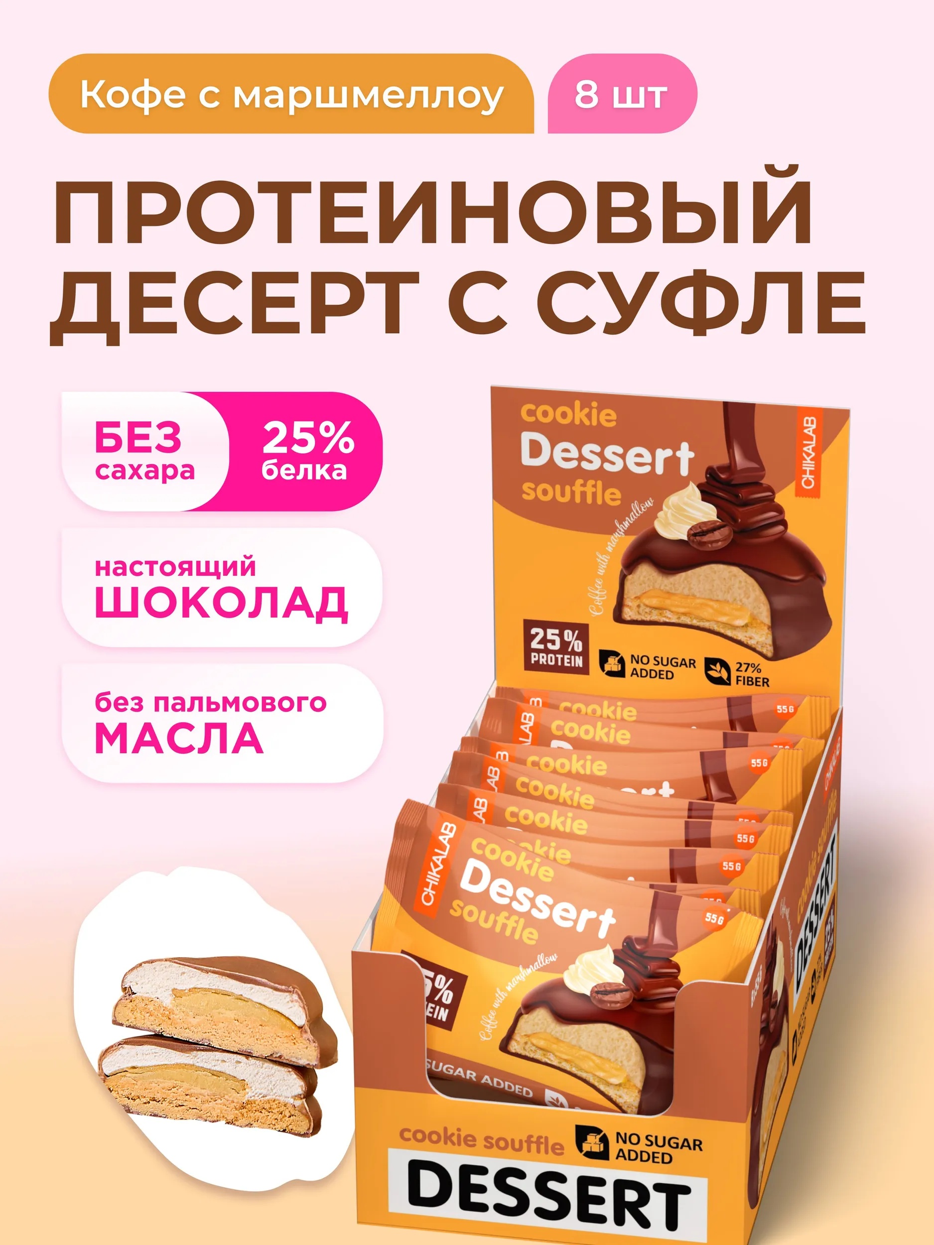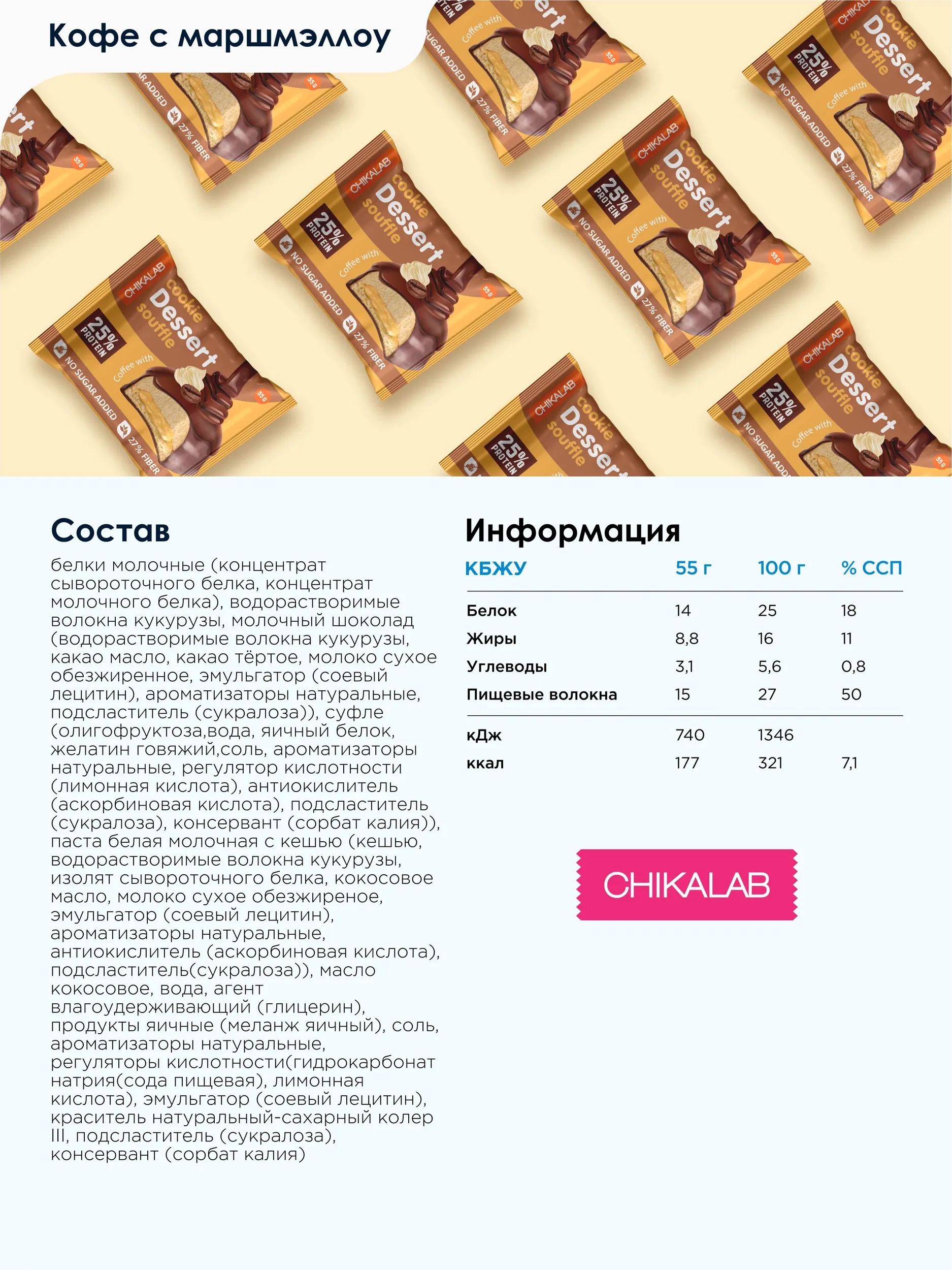 CHIKALAB Печенье глазированное Кофе с маршмеллоу 55 г
