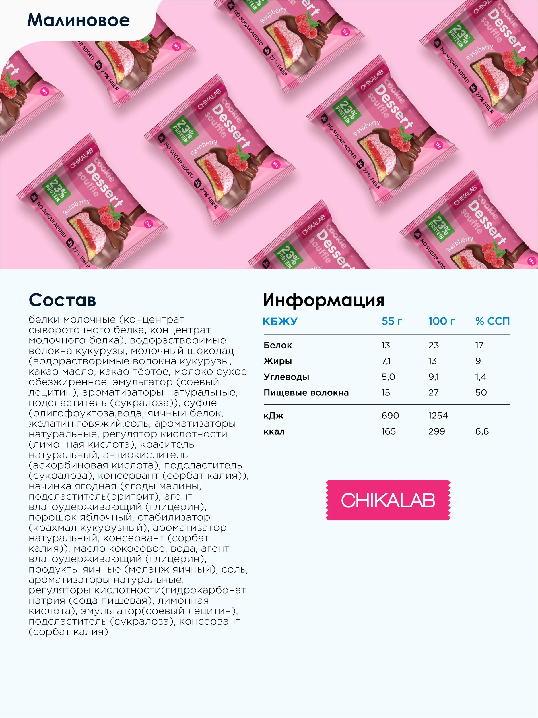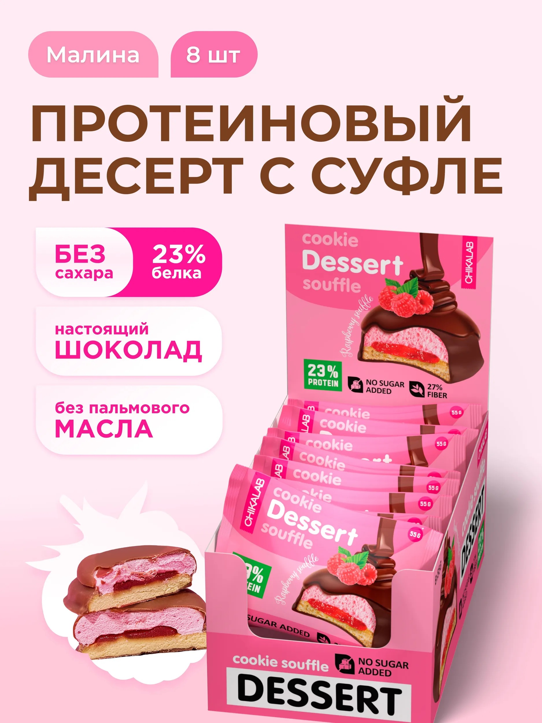 CHIKALAB Печенье глазированное Малиновое суфле 55 г