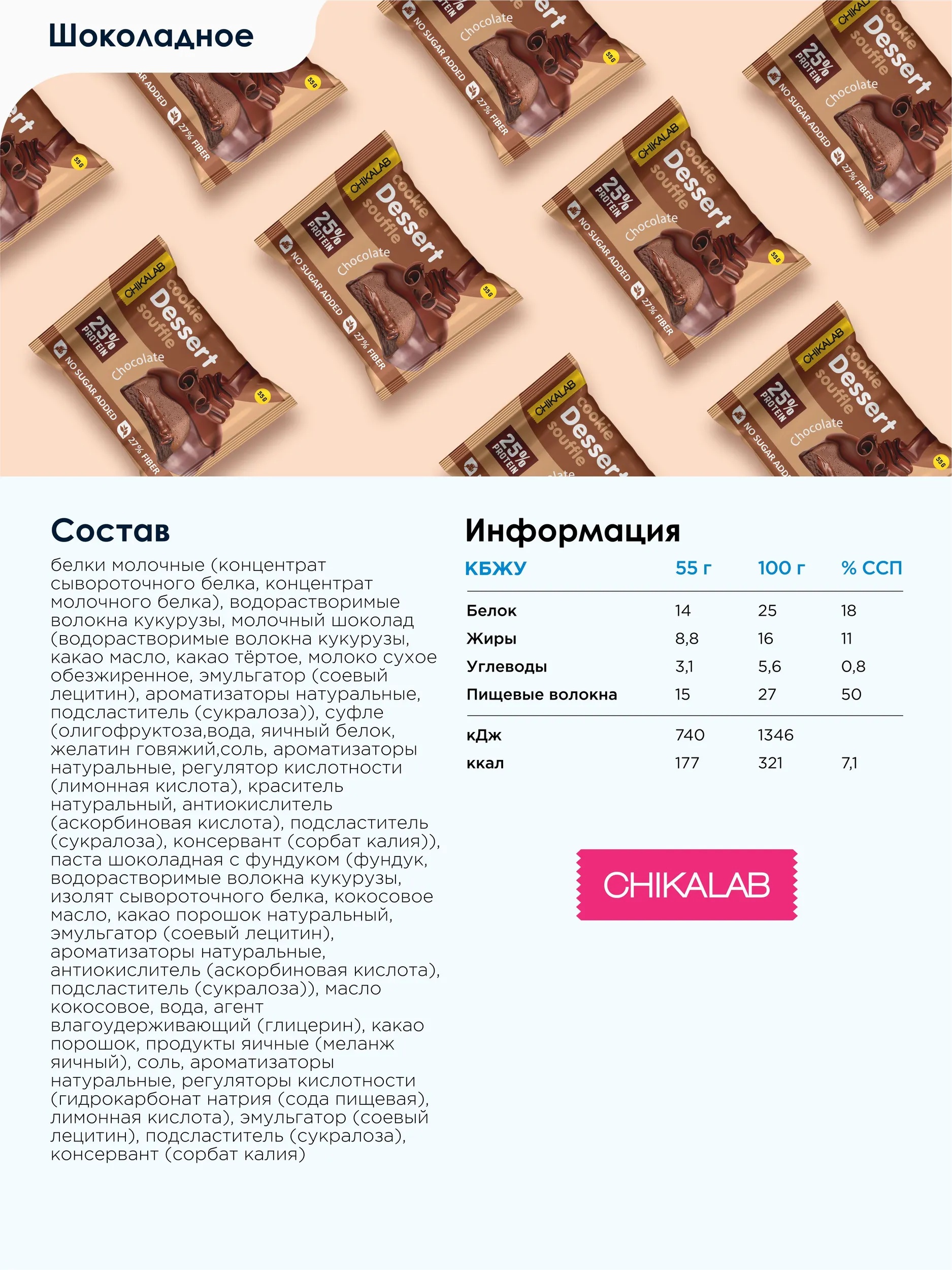 CHIKALAB Печенье глазированное Шоколадное суфле 55 г