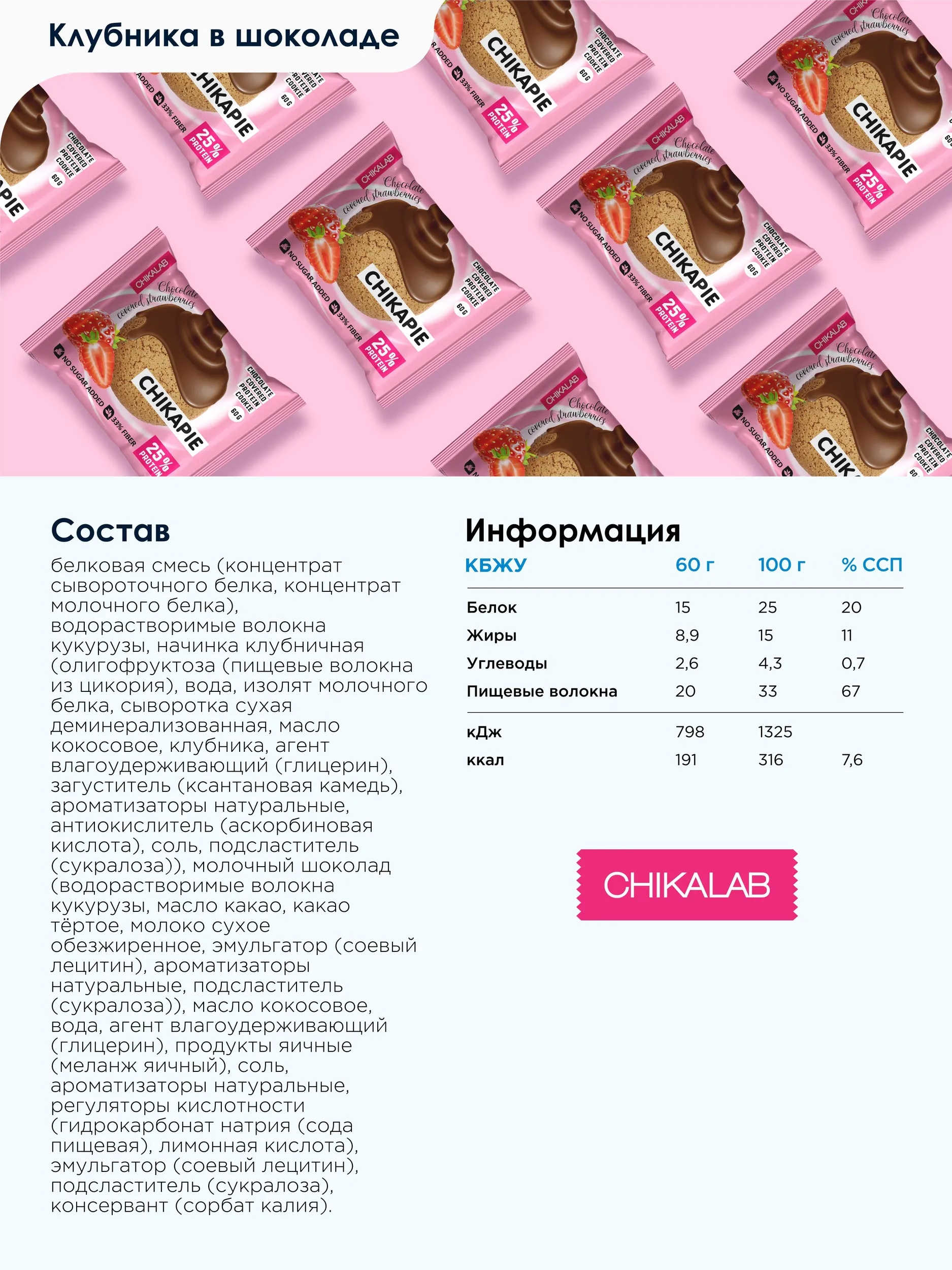 CHIKALAB Печенье глазированное с начинкой Клубника в шоколаде 60 гр.