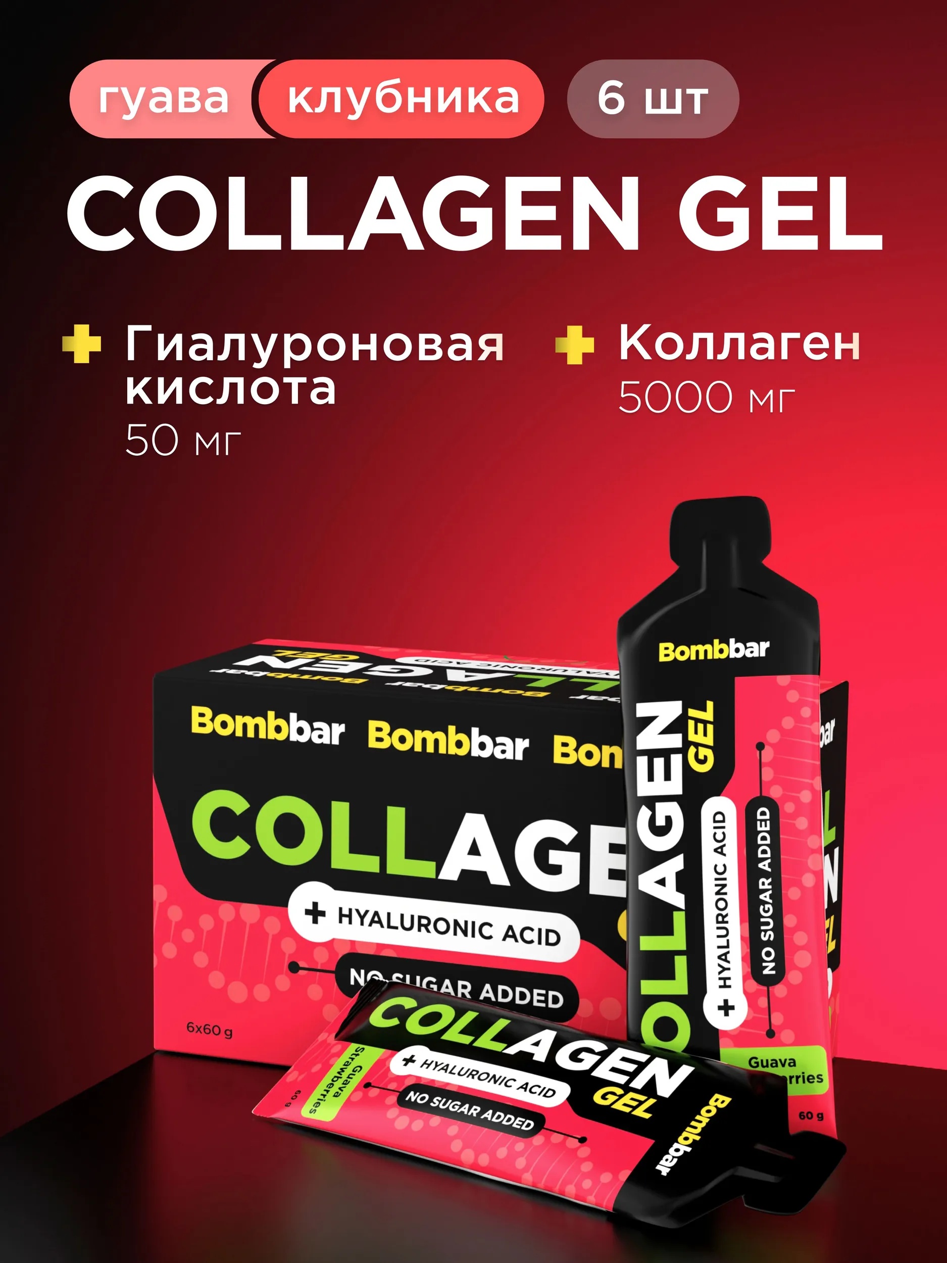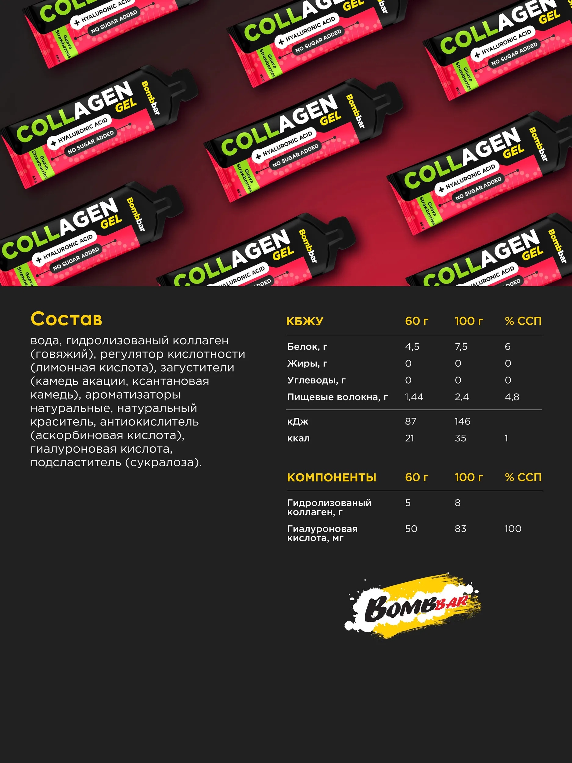 BOMBBAR Питьевой гель с коллагеном Гуава-клубника 60 г