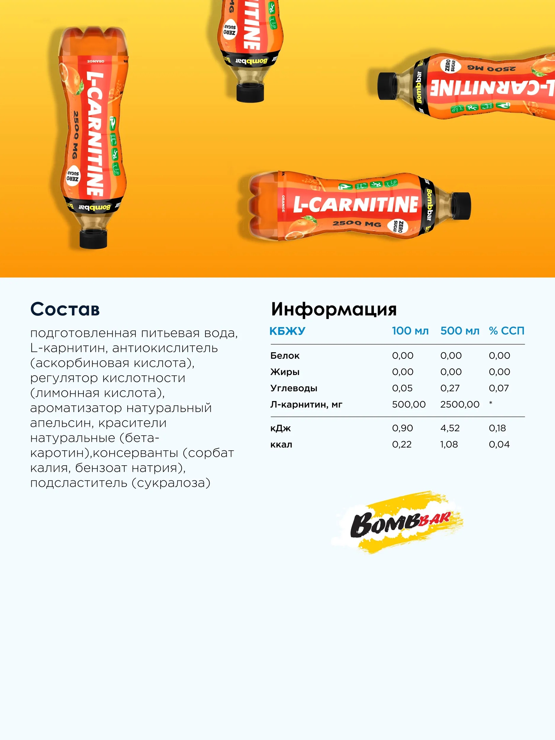 Bombbar Напиток "Л-карнитин со вкусом апельсин" 500 мл