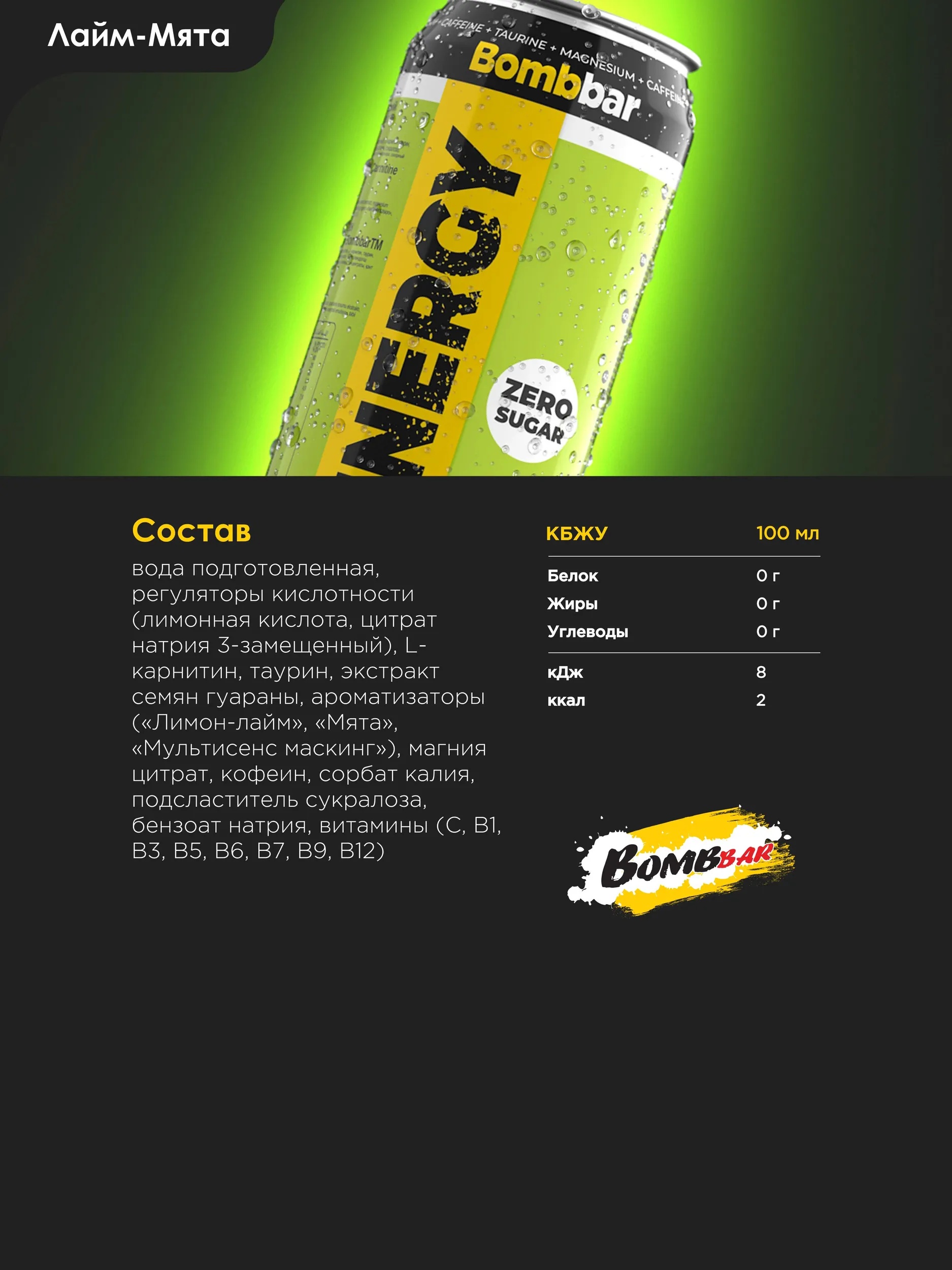 Bombbar Напиток Energy L-Карнитин с гуараной - Лайм-Мята 500 мл
