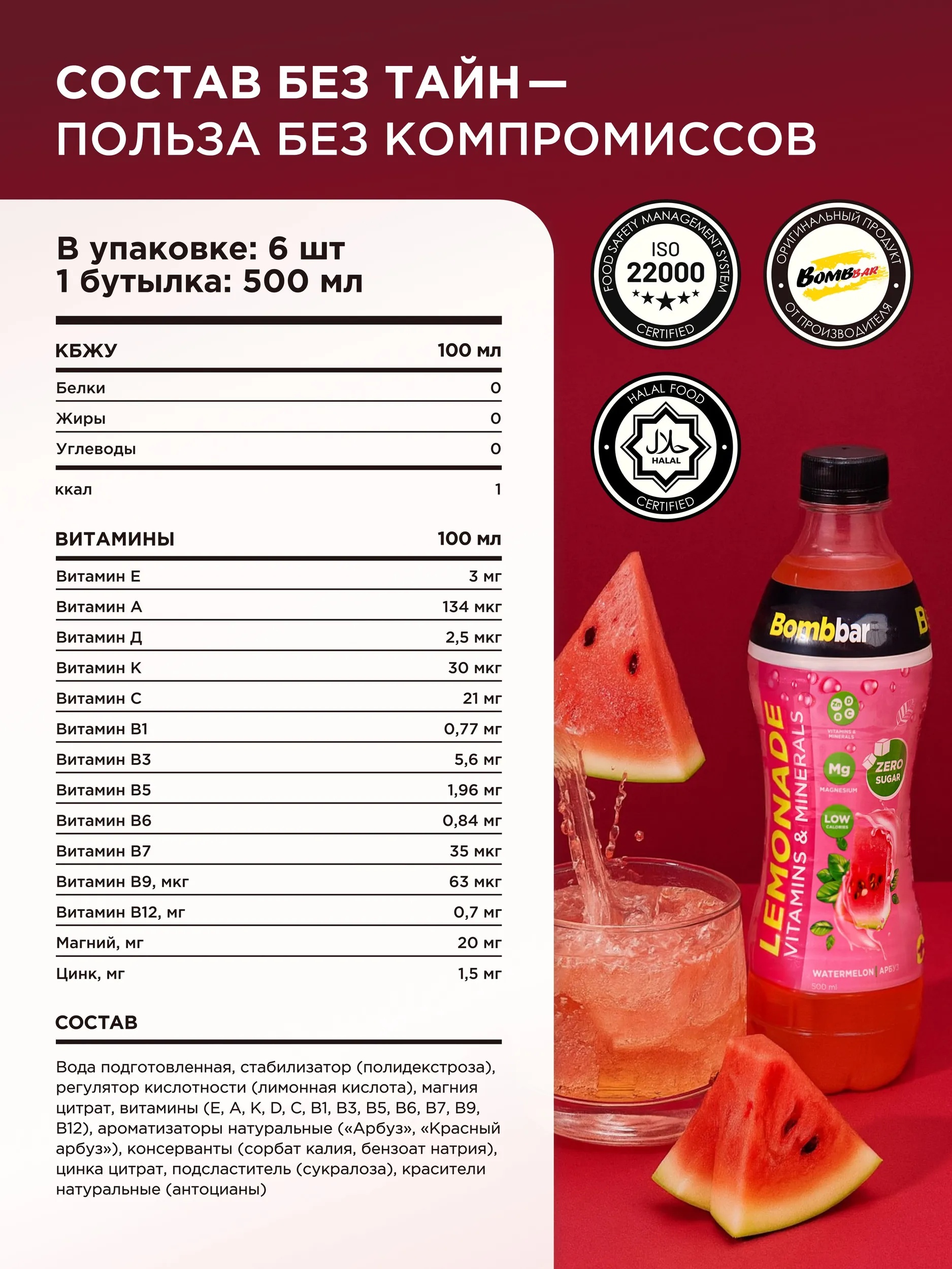 Bombbar Напиток Лимонад со вкусом арбуза 500 мл