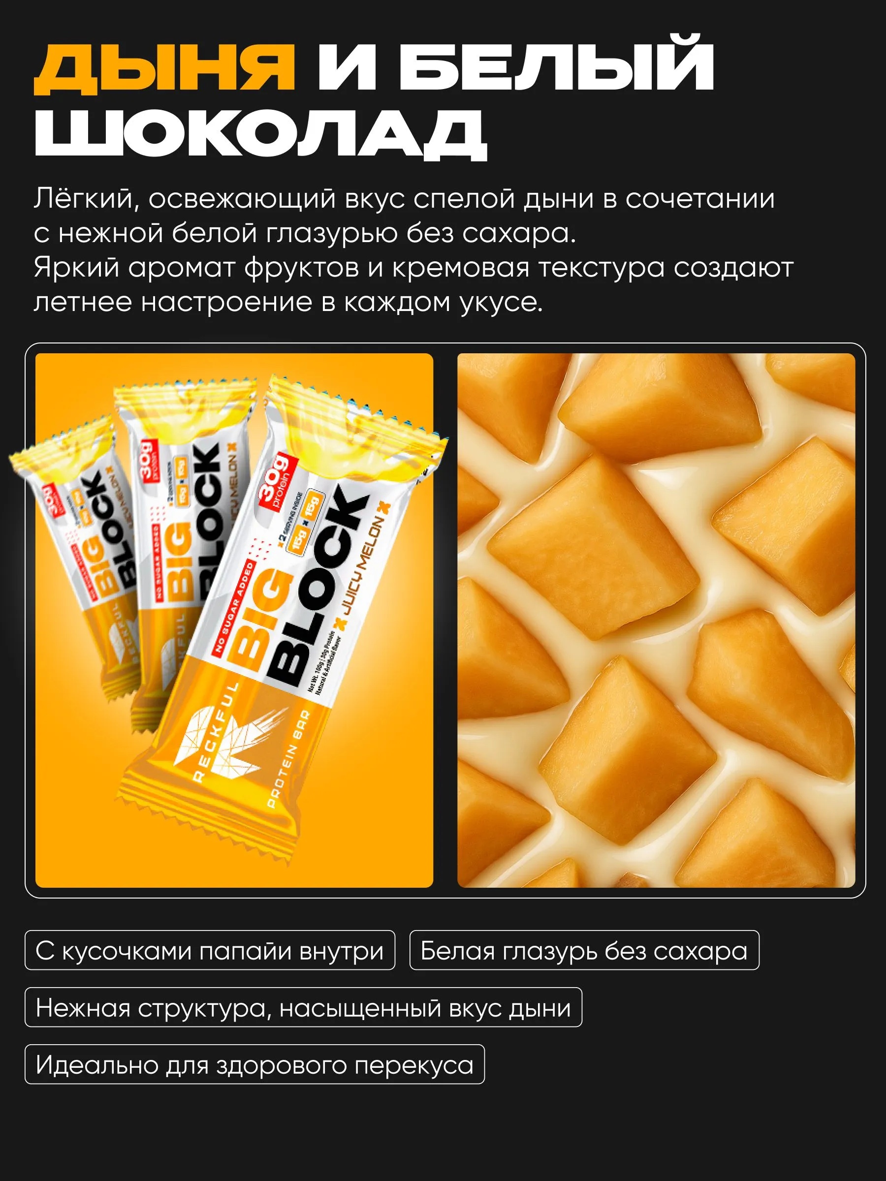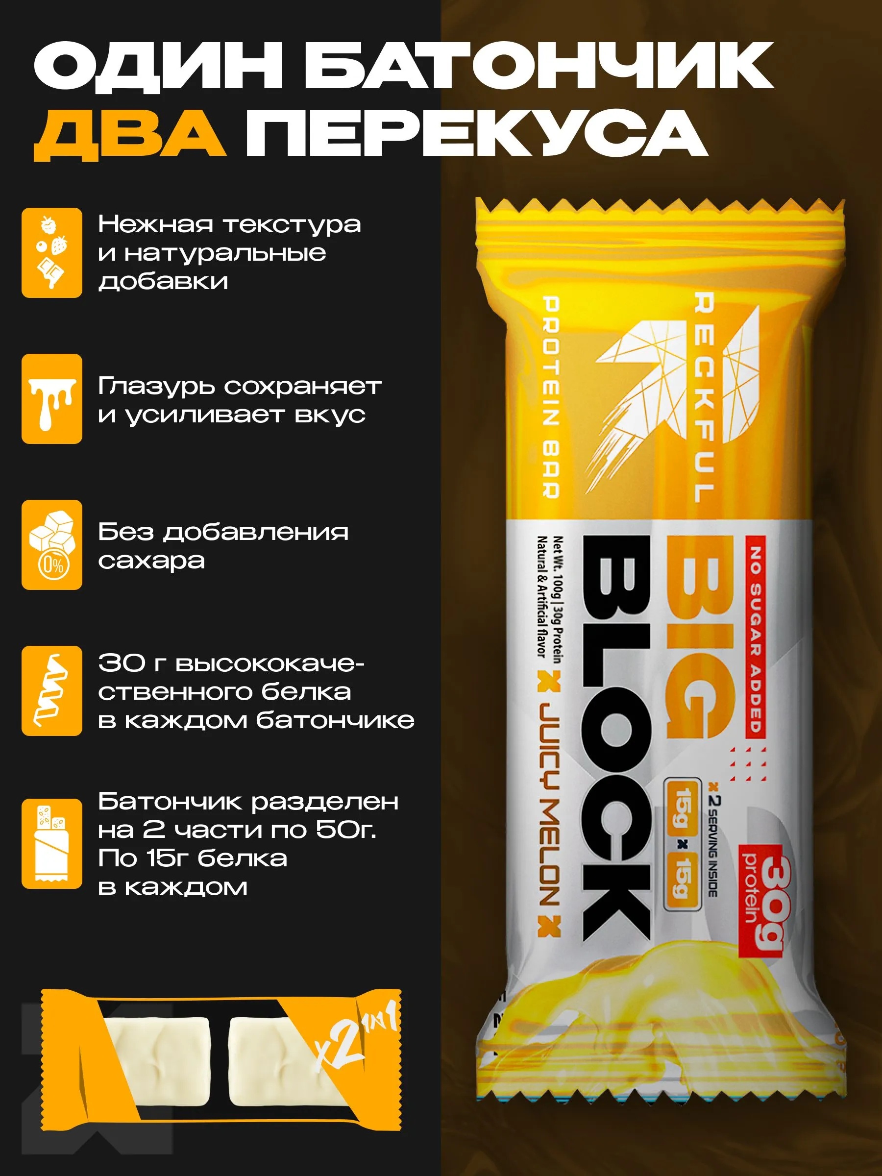 RECKFUL ® PROTEIN BAR - BIG BLOCK 100g 1 батончик 30г белка (Дыня в белой глазури)