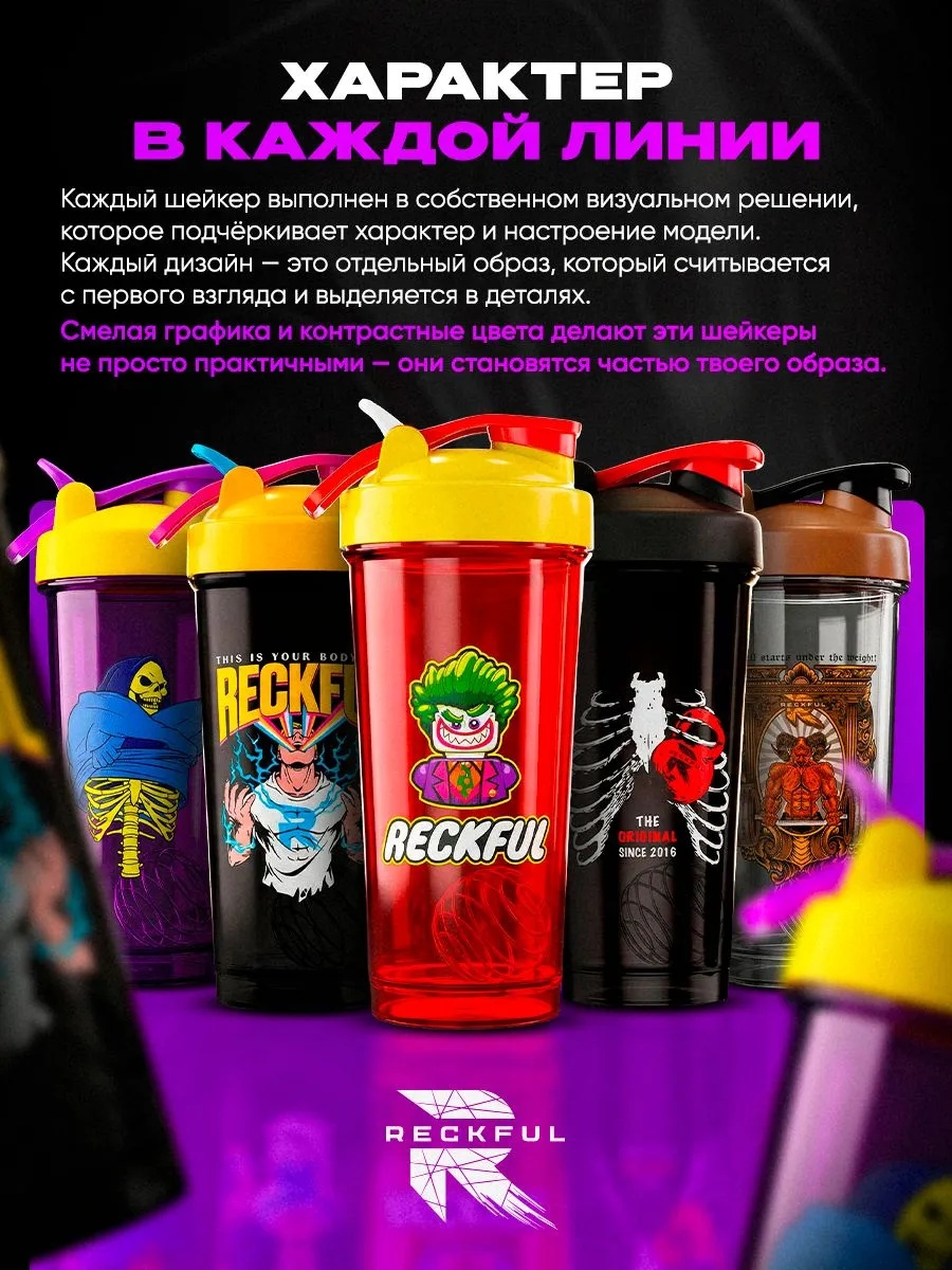 Шейкер Reckful ® Bottle PC 600ml Skeletor