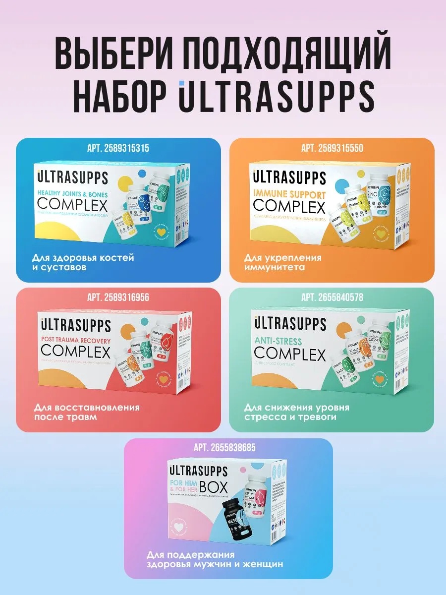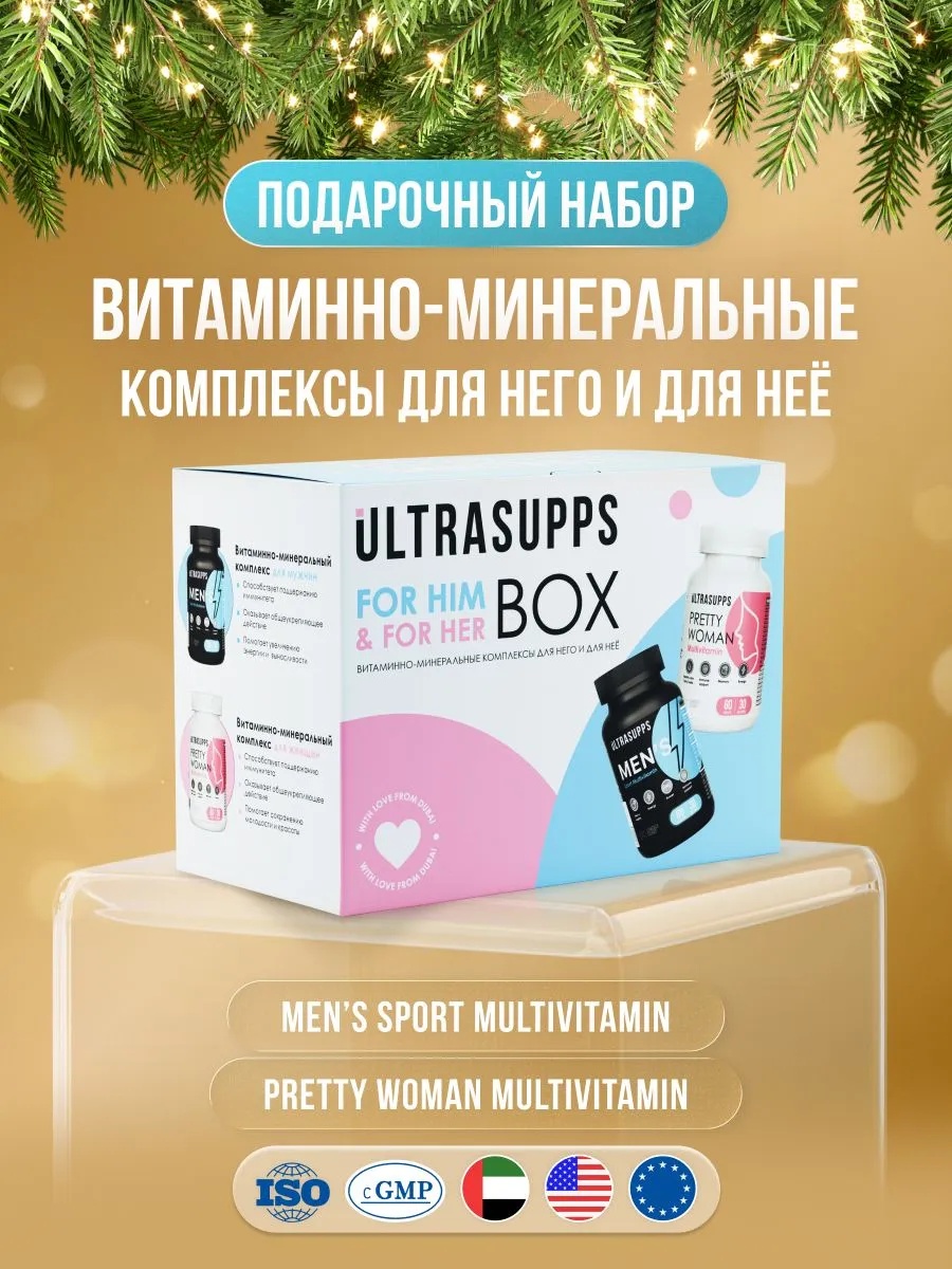 ULTRASUPPS набор / Ультрасаппс / Ultrasupps For Him & For Her Box / Pretty Women Multivitamin 60 и Men's Sport Multivitamin 60/ Витаминно-минеральный комплекс для него и для неёUltrasupps