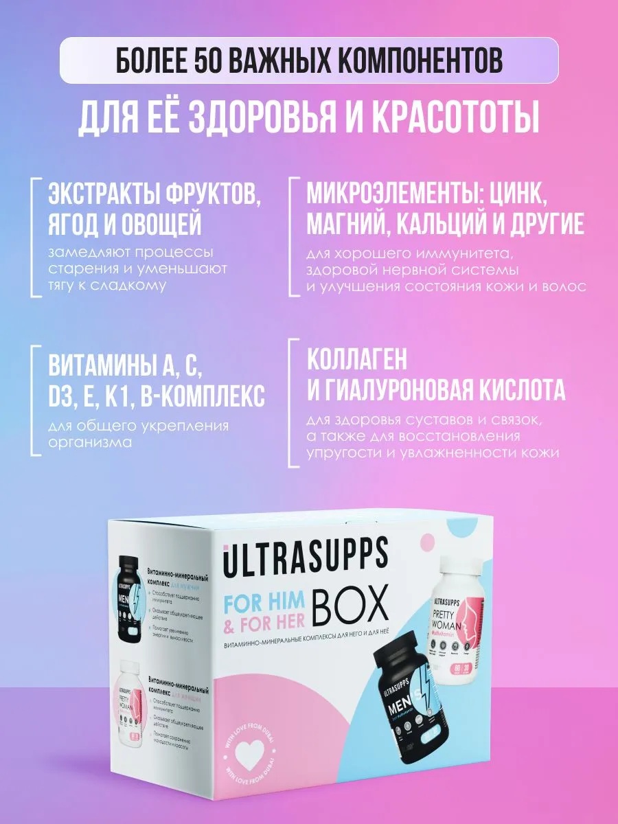 ULTRASUPPS набор / Ультрасаппс / Ultrasupps For Him & For Her Box / Pretty Women Multivitamin 60 и Men's Sport Multivitamin 60/ Витаминно-минеральный комплекс для него и для неё