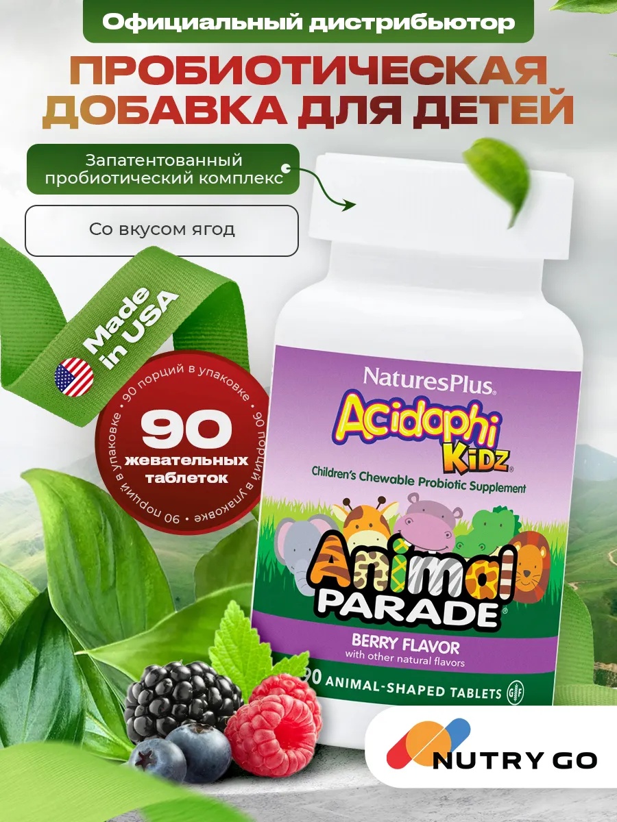 Nature's Plus Animal Parade Acidophi Kidz Chewable, Berry Flavor 90