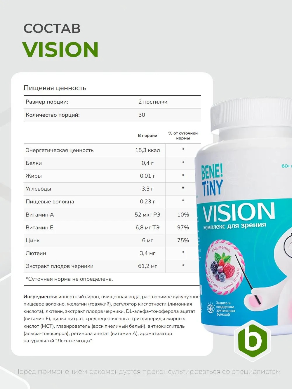 Bene Tiny "Комплекс для зрения" со вкусом лесные ягоды