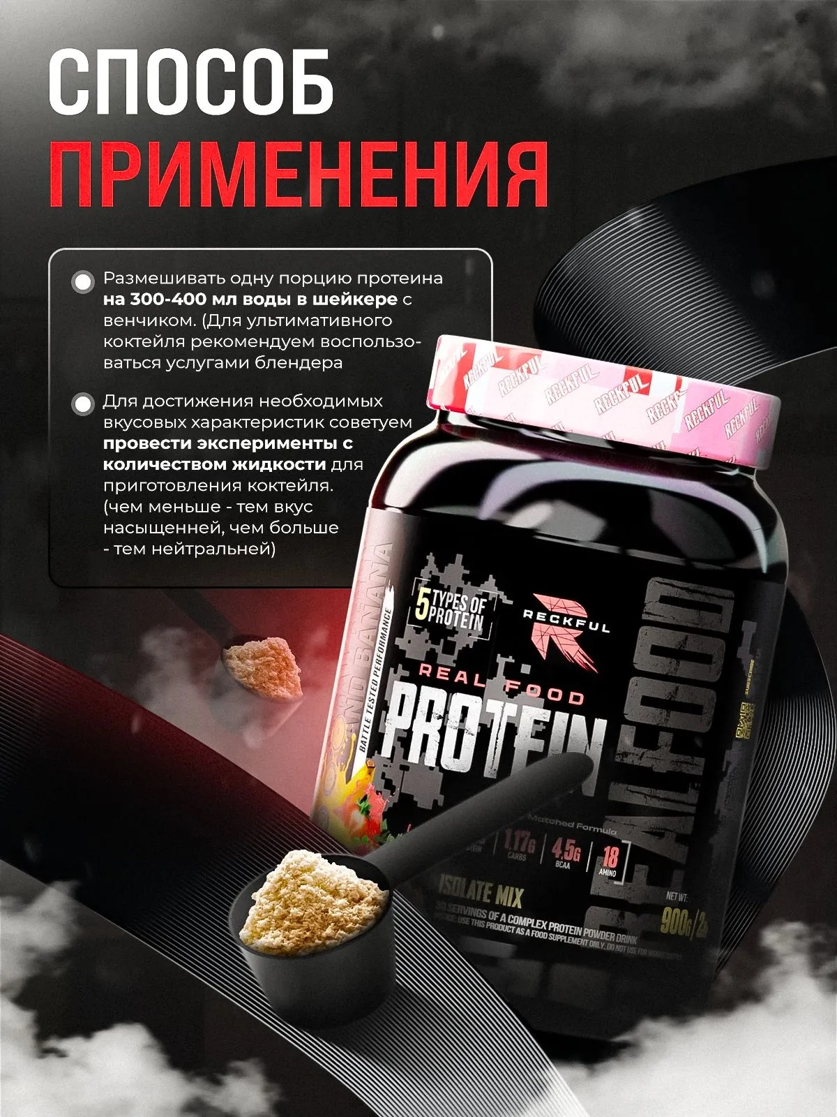Reckful ® Real food Protein 900g isolate-mix NO lactose (Strawberry Banana)