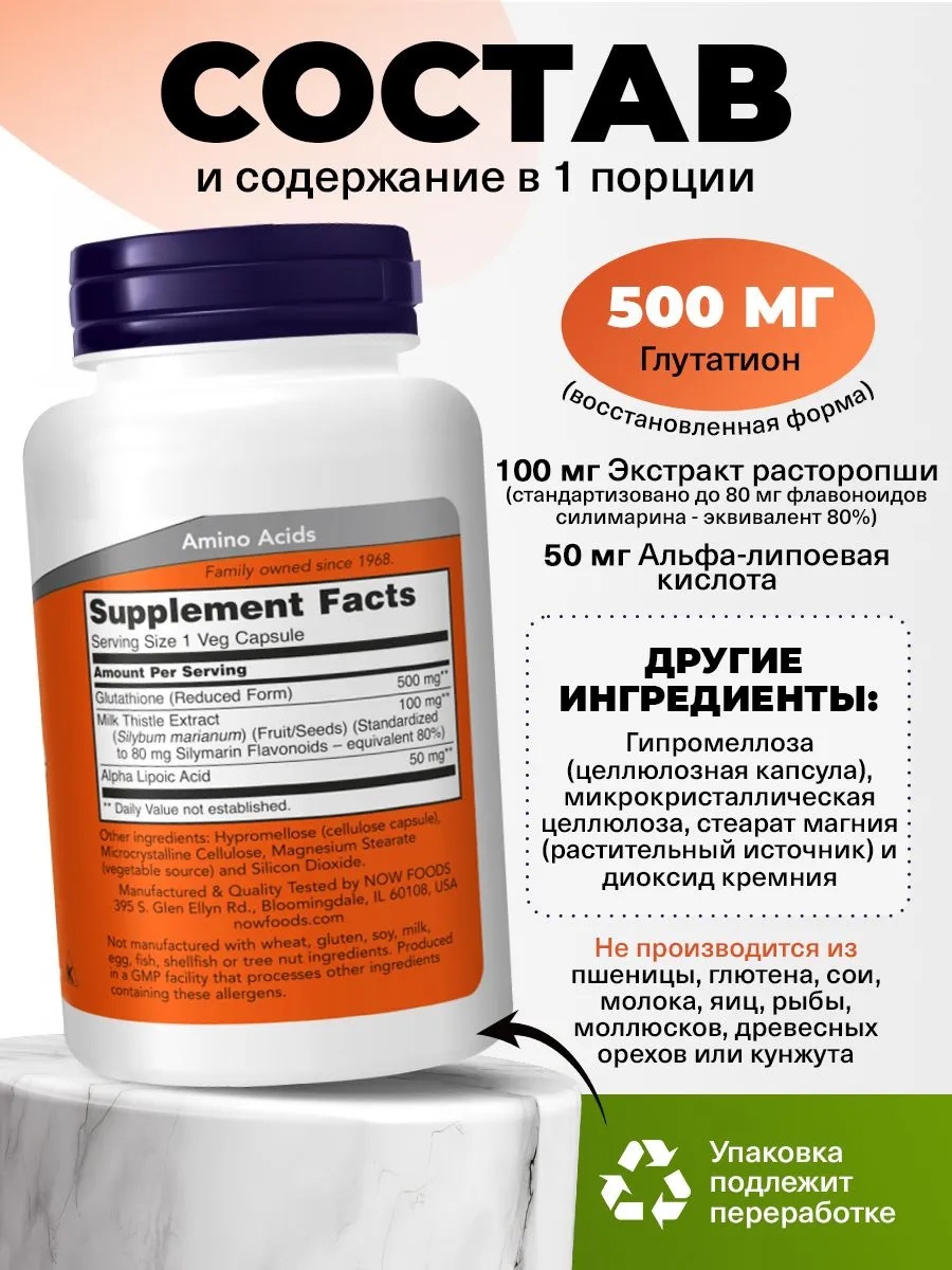 JARROW FORMULAS Glutathione Reduced 60 капсул