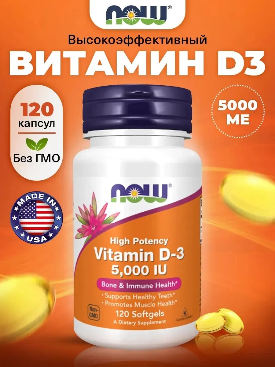 NOW Vitamin D-3 5000 ед 120 капс