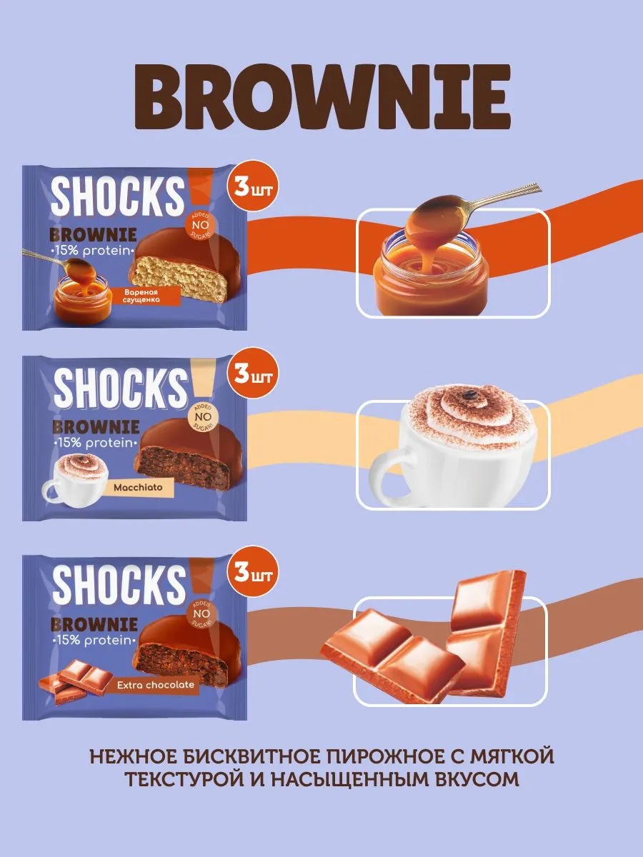 FitnesSHOCK Брауни глазированный SHOCKS 50 г - шоколадный