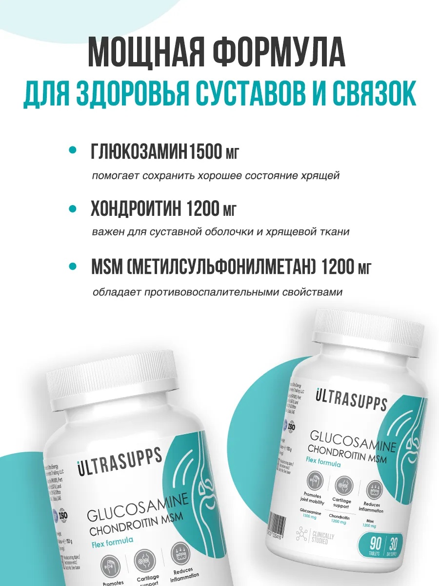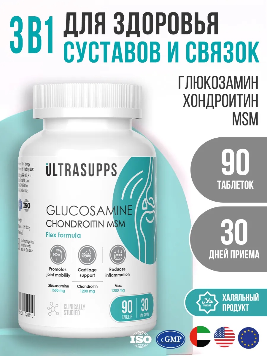 ULTRASUPPS Glucosamine & Chondroitin & MSM 90 таб