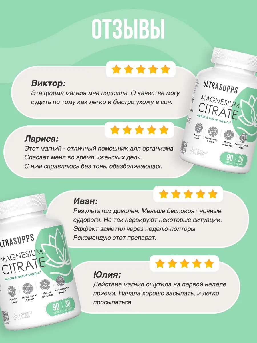 ULTRASUPPS Magnesium Citrate 90 мяг капс